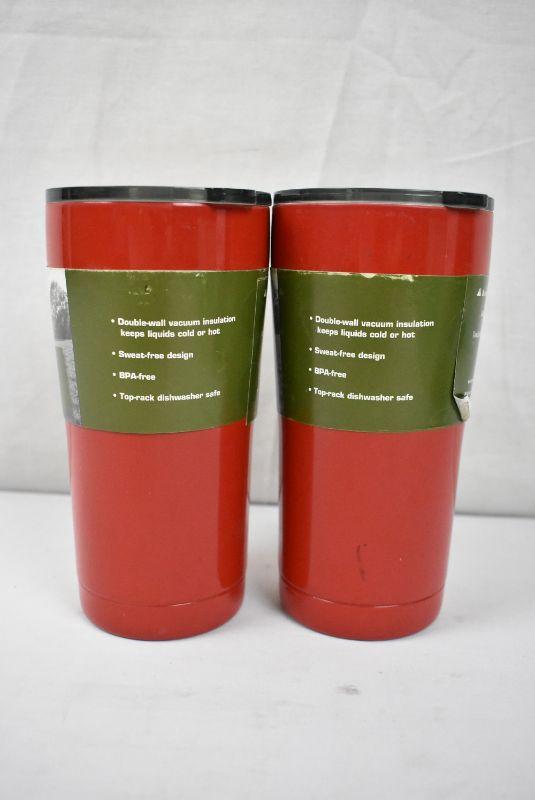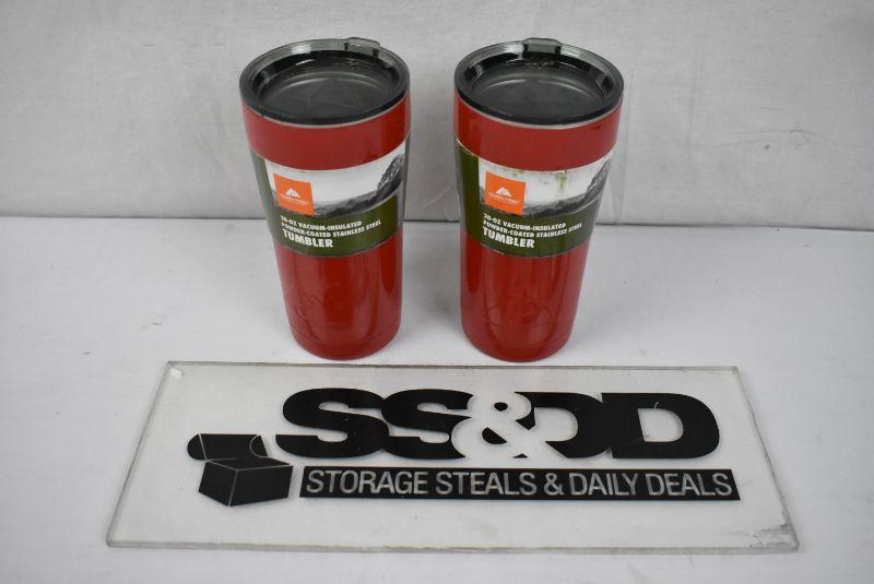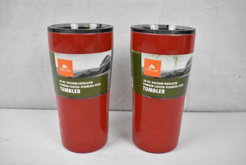 2 Red Tumblers, Ozark Trail 20 oz Vacuum Insulated Stainless Steel - New