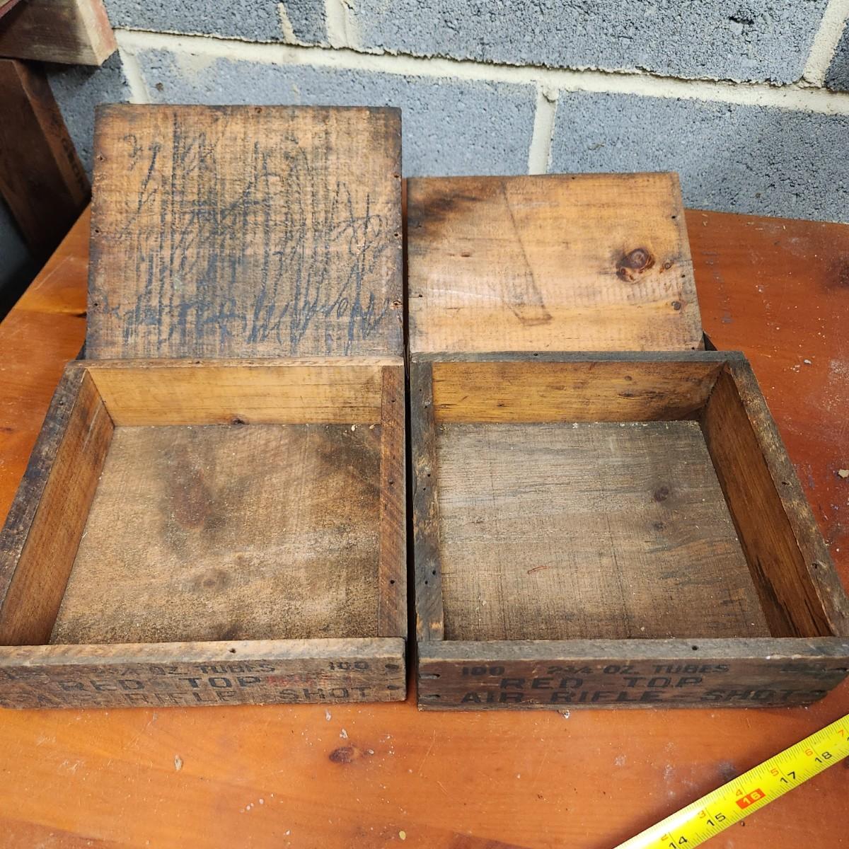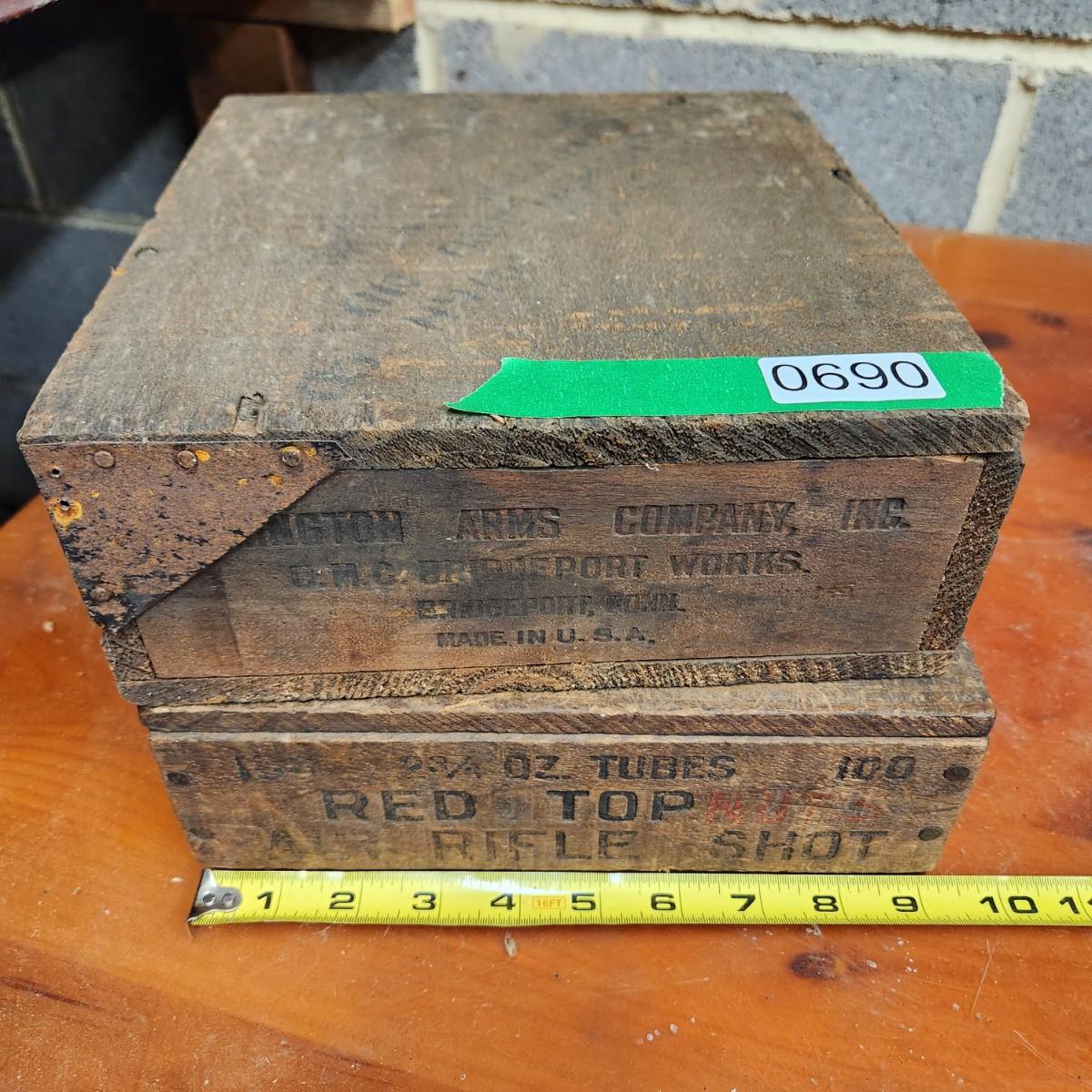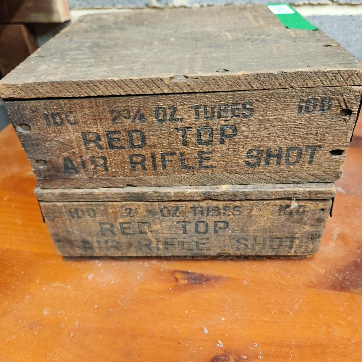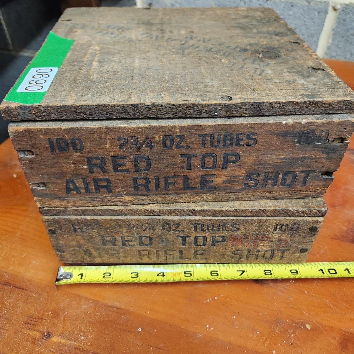 2 Remington Arms Co. Red Top Air Rifle Shot Wooden Ammo Crate Boxes