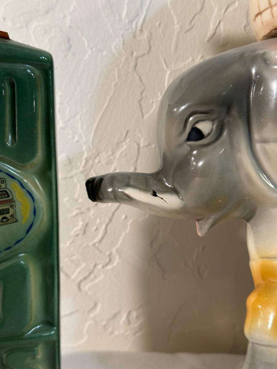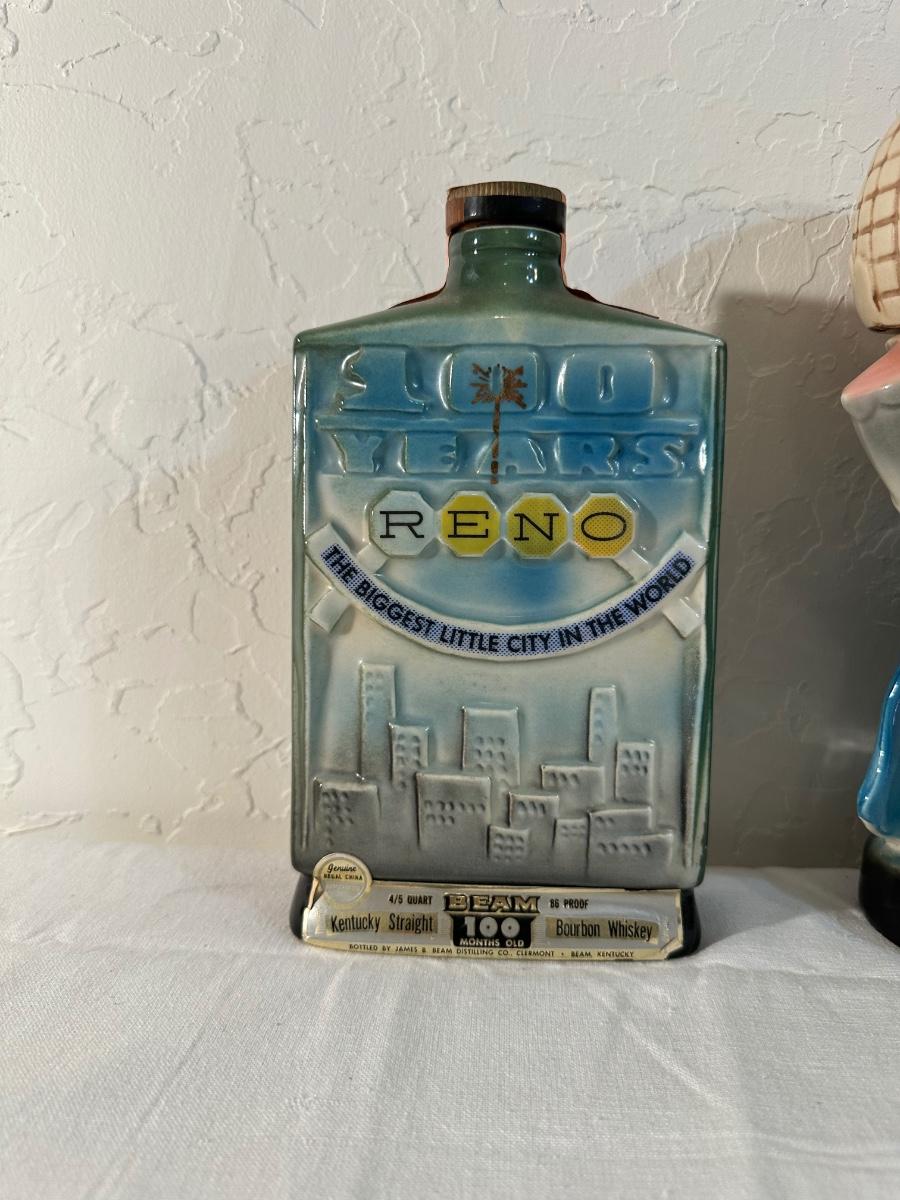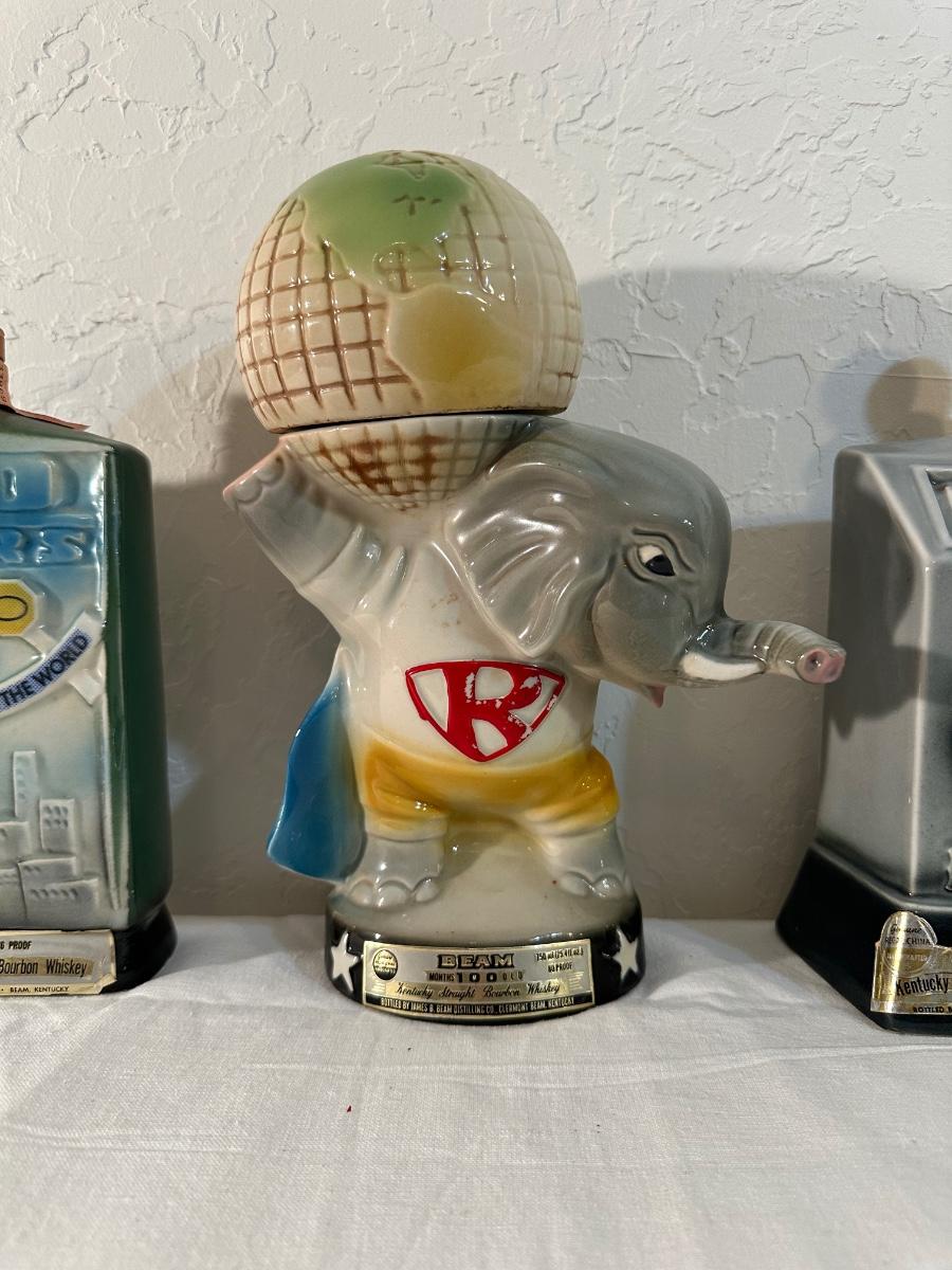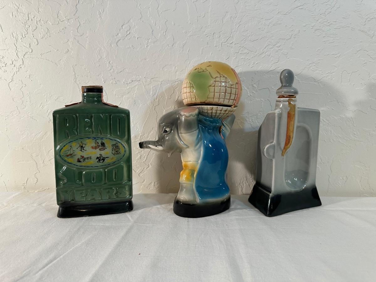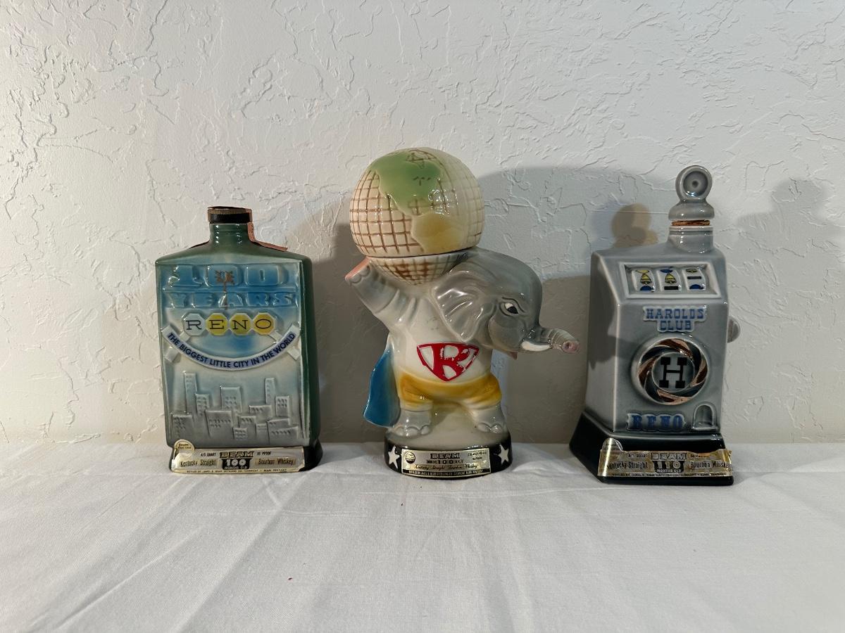 2 RENO AND AN ELEPHANT HOLDING THE WORLD JIM BEAM DECANTERS