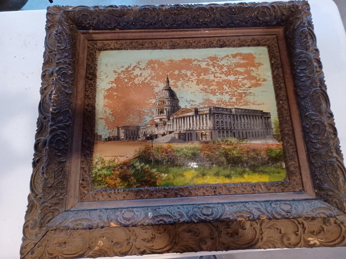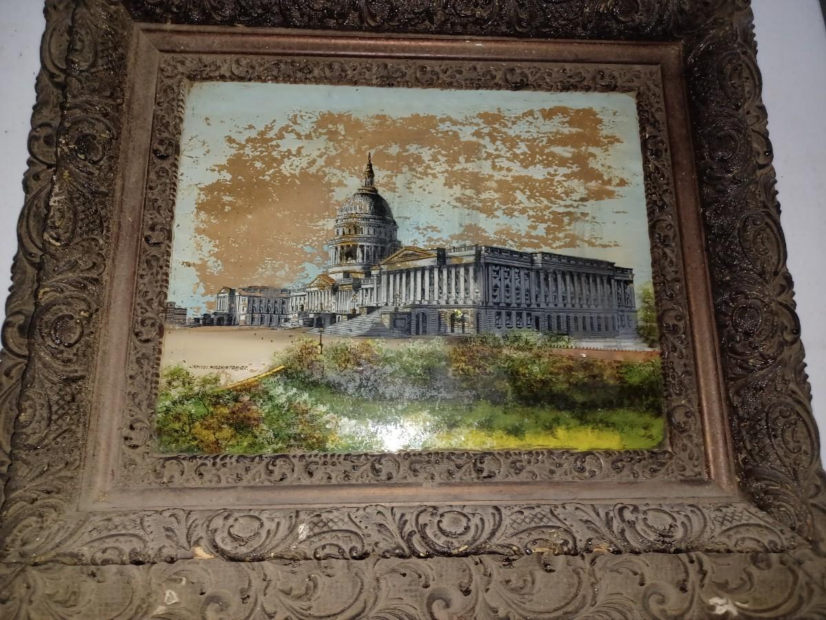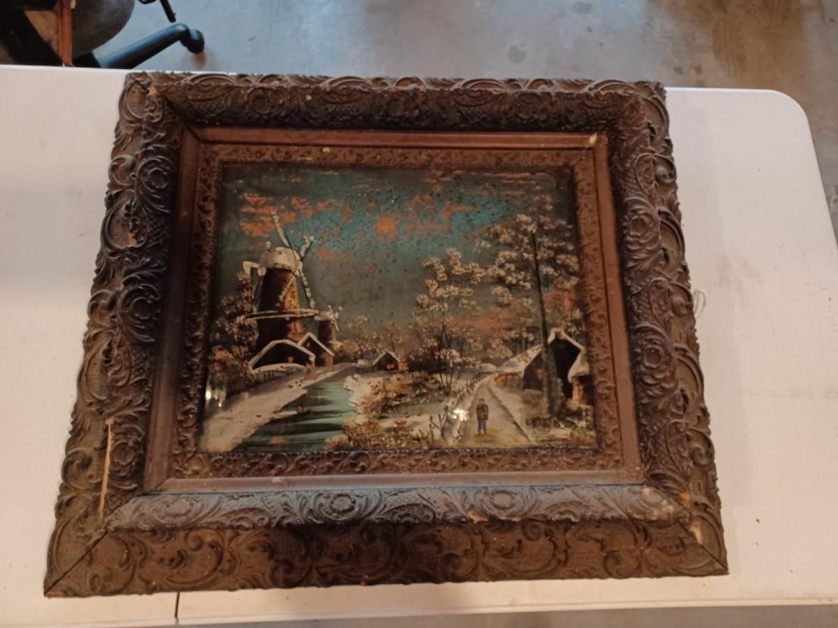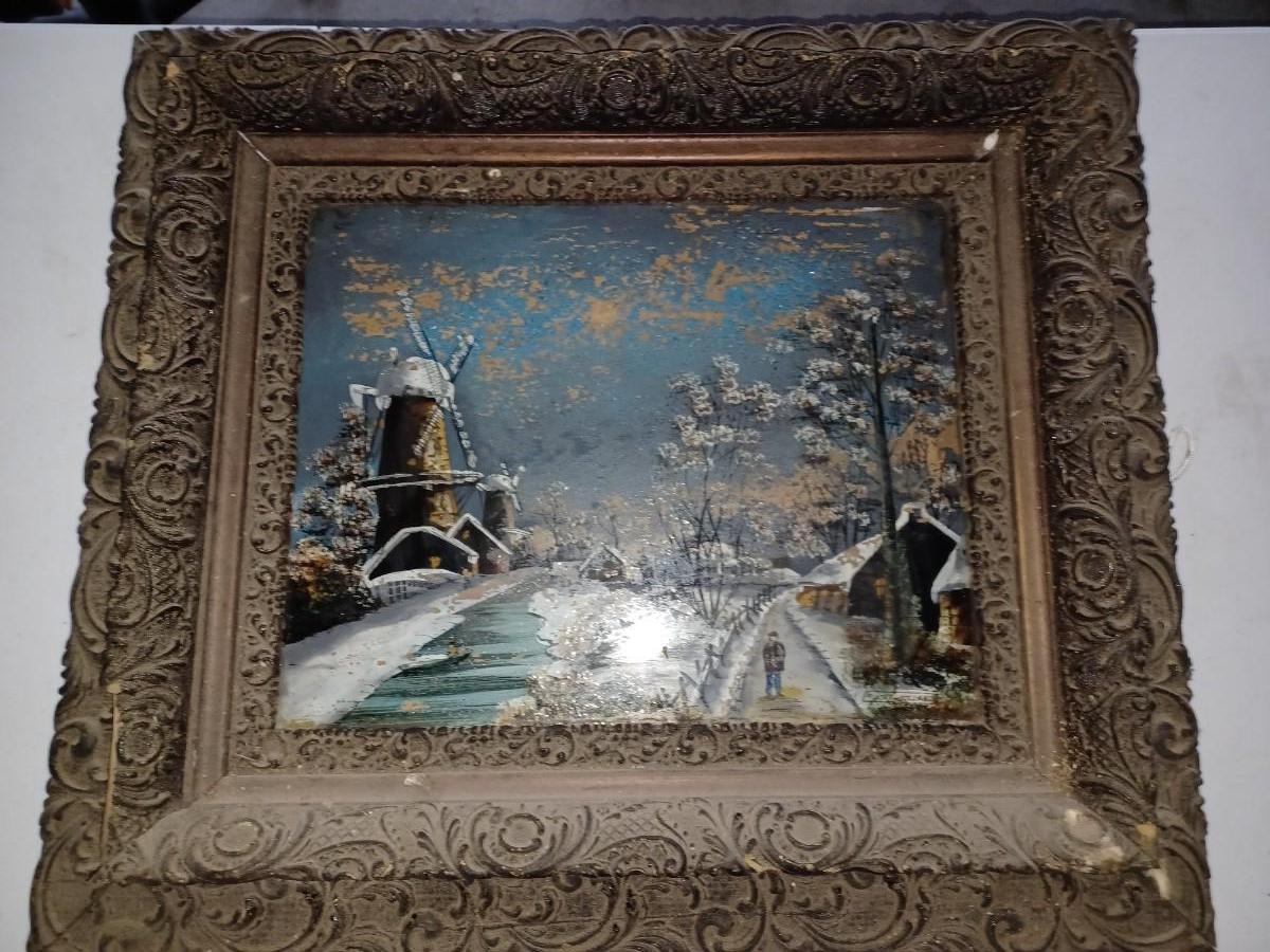 2 reverse glass painting in ornate frames