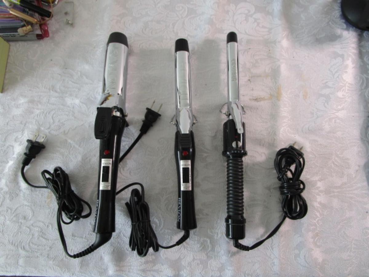 Revlon Model RV278C 1-1/2" barrel; Revlon Model RV278B 1" barrel; Conair Model CD81X 3/4" barrel, all 3 have swivel cords