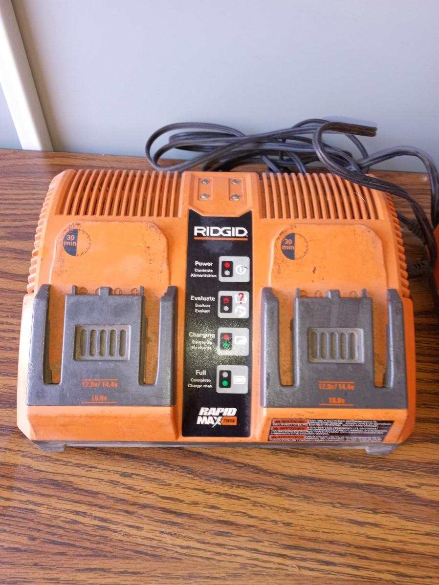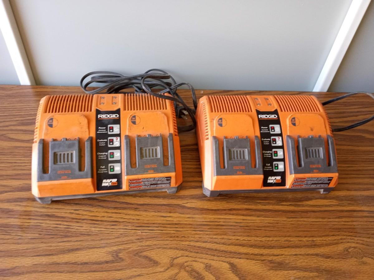 2 RIDGID RAPID MAX TWIN BATTERY CHARGERS