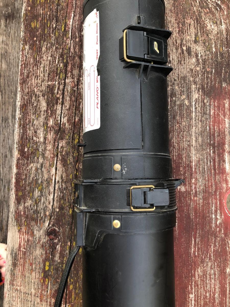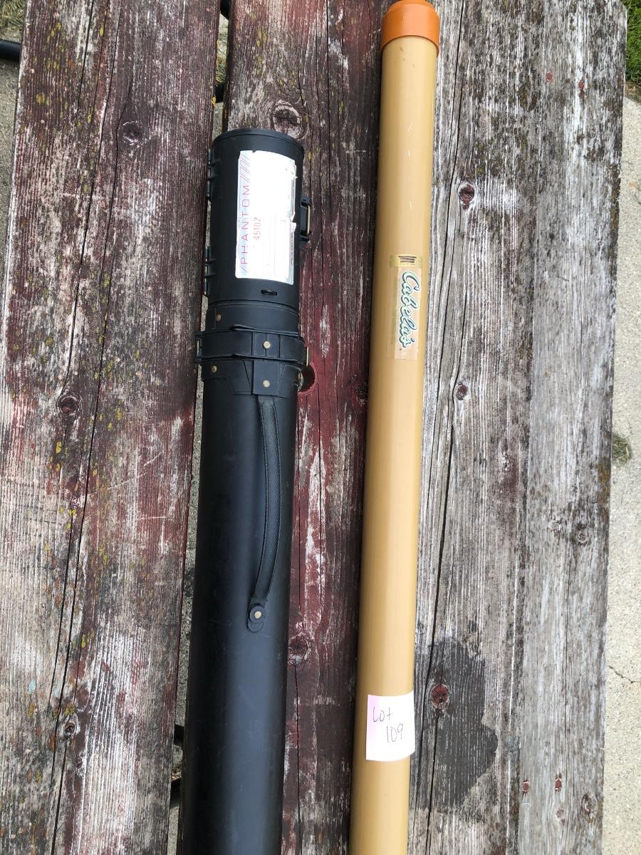2 fishing rod carrying cases. Black carrier is 63 1/2” long & the tan one is 72 1/2” long