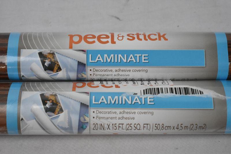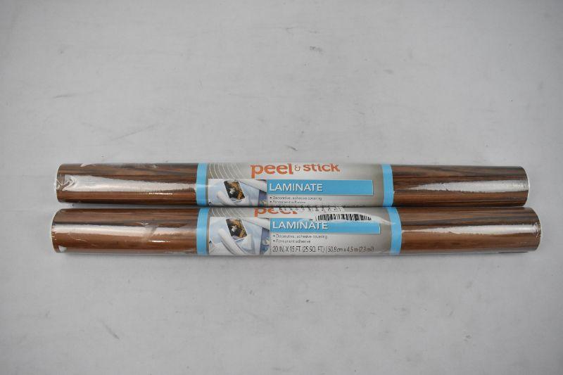 2 Rolls Peel & Stick Laminate 20" x 15' Each, Brown Wood Look - New