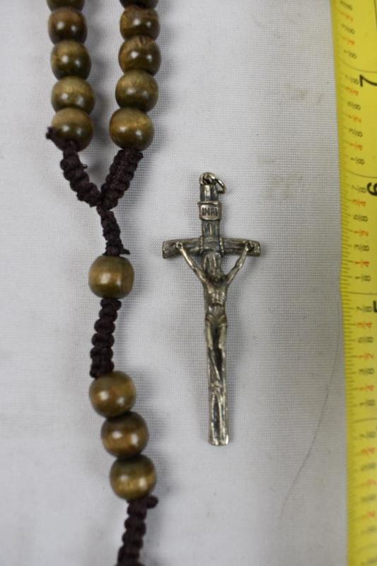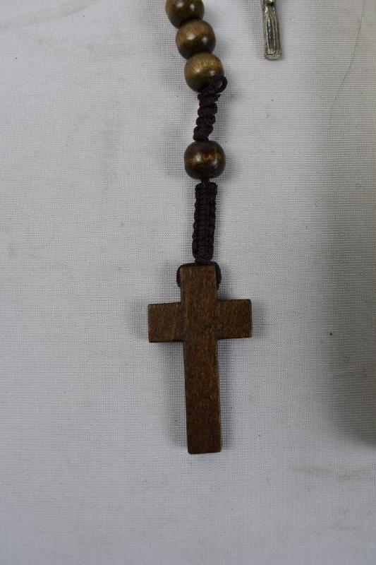 2 Rosaries: 1 Brown Wooden Beaded, 1 Silver Tone, No Chain