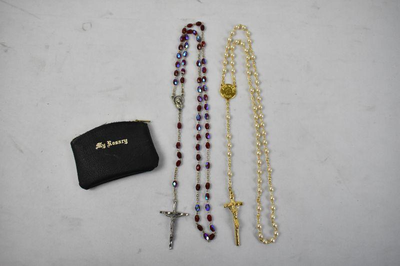 2 Rosaries with 1 Black Zipper Pouch - Vintage