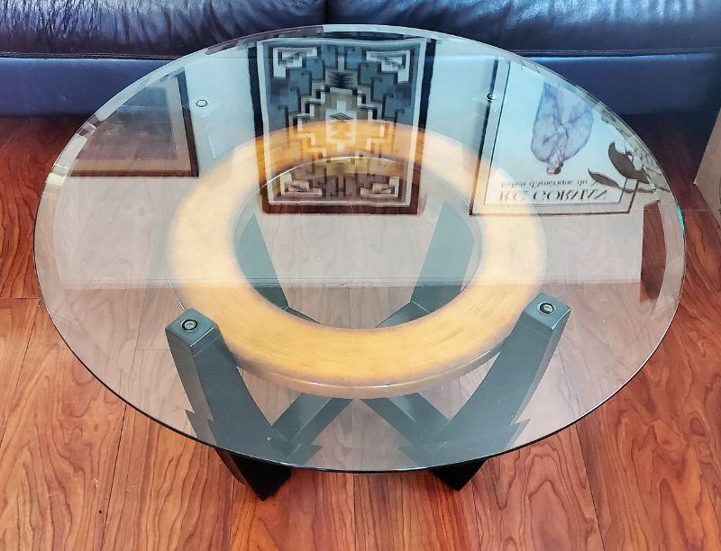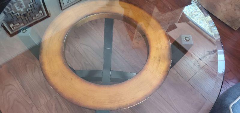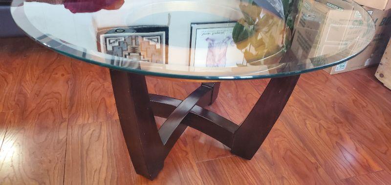 2 Round Coffee Tables w/ Clear Glass Tops