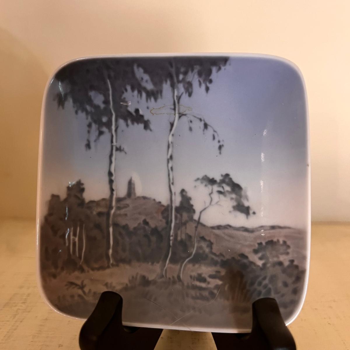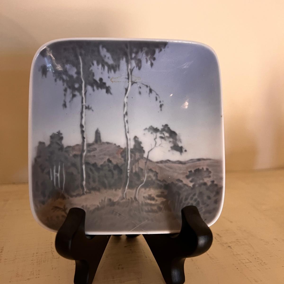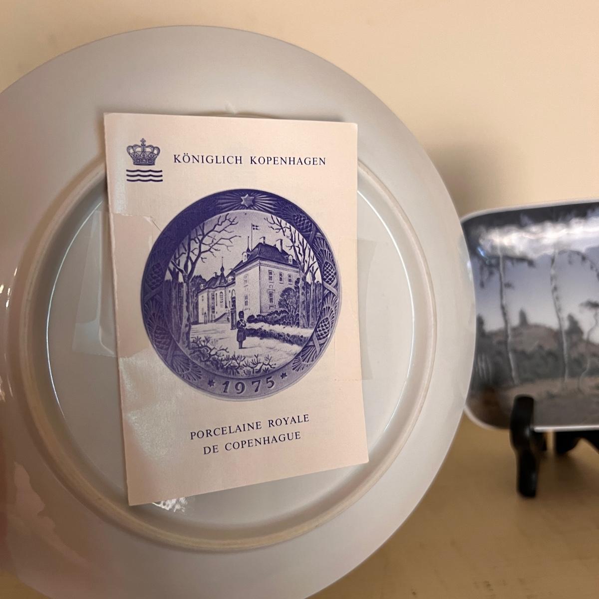 Royal Copenhagen Christmas plate 1975 "The Queen's Christmas Residence". Royal Copenhagen Demark Himmelbjerget 4 in Square Porcelain Plate Souvenir. Excellent condition. Comes with stands.