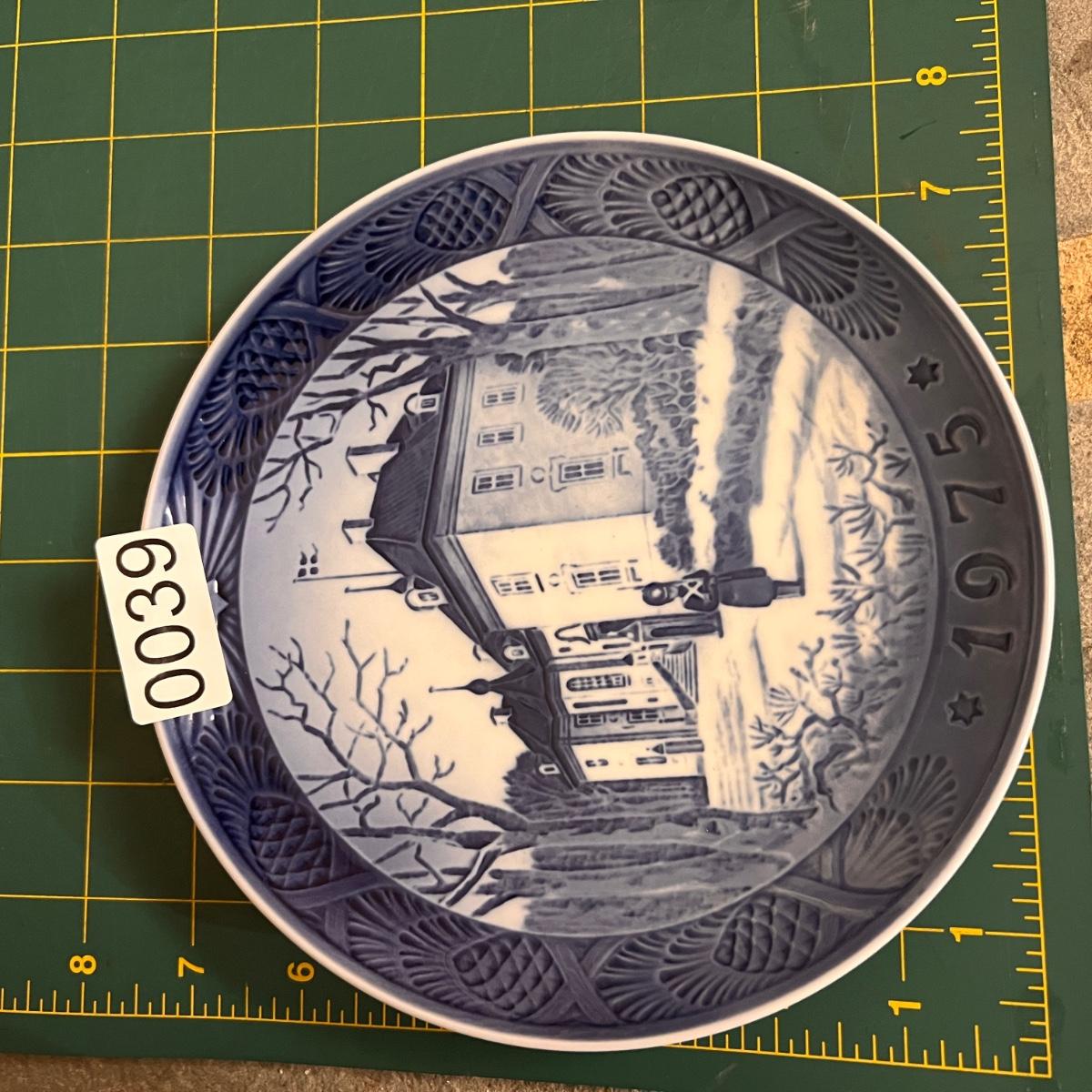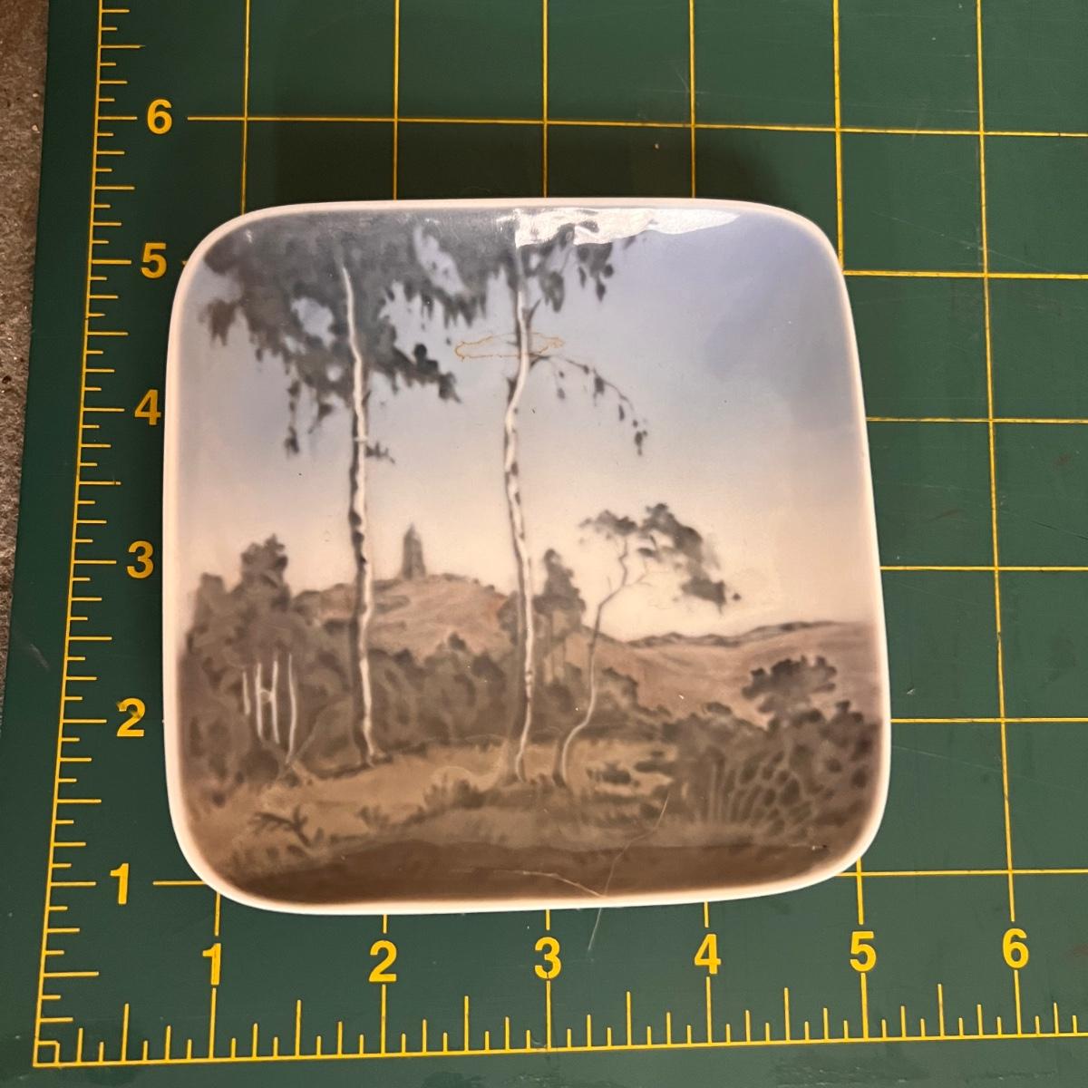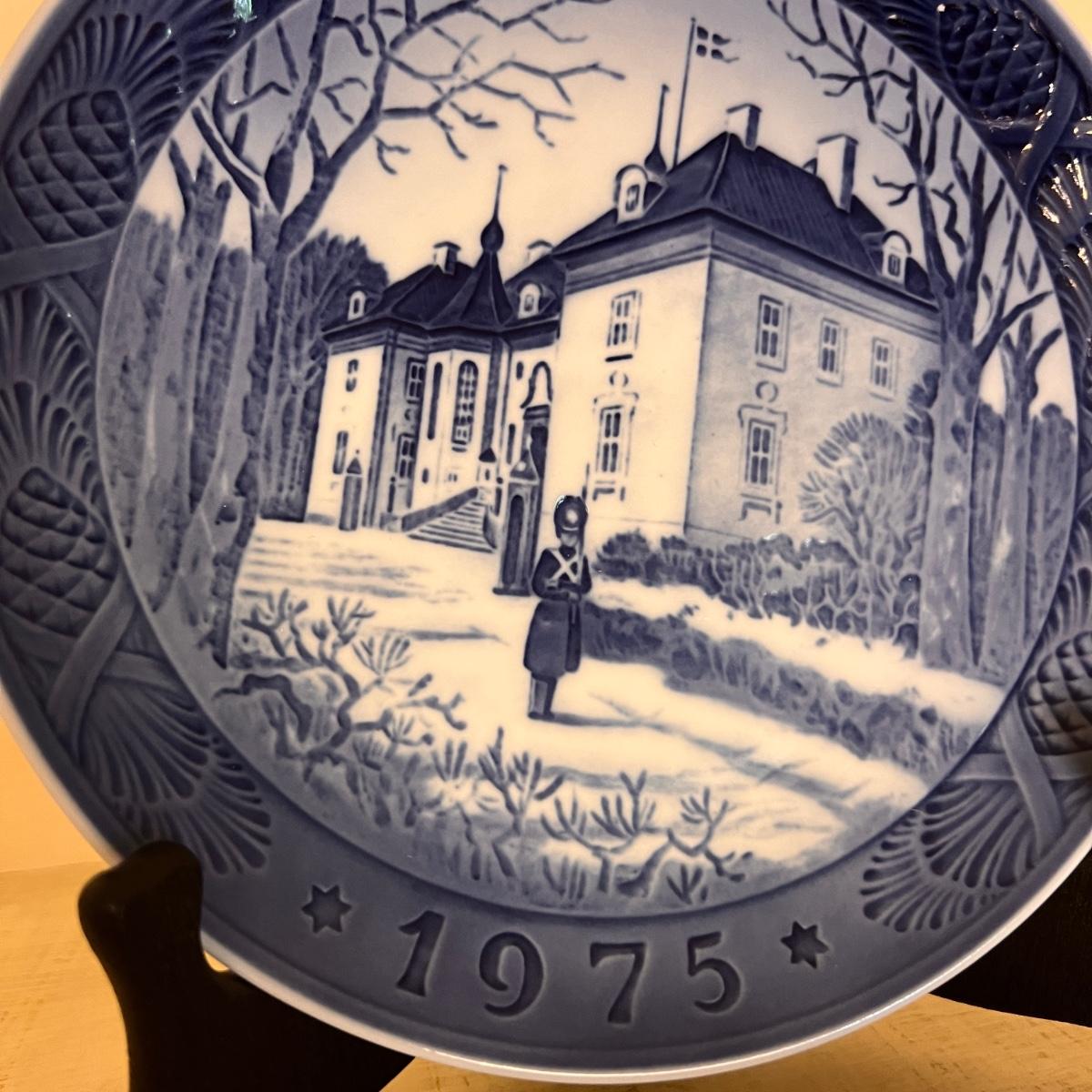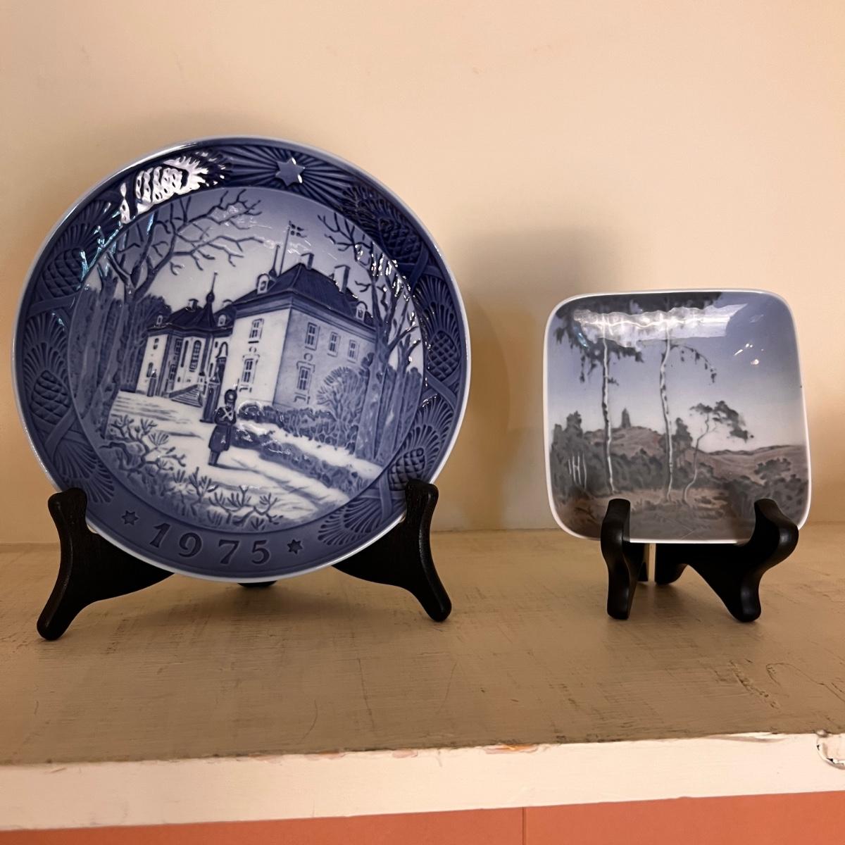 Royal Copenhagen Christmas plate 1975 "The Queen's Christmas Residence". Royal Copenhagen Demark Himmelbjerget 4 in Square Porcelain Plate Souvenir. Excellent condition. Comes with stands.