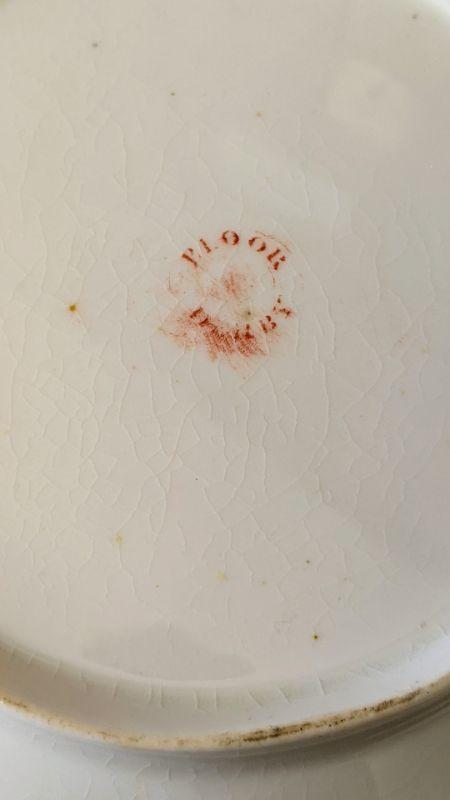 Marks on underplate and tureen: ROBERT BLOOR C.1825 - 1848 Printed Gothic-style marks introduced to counteract the carelessly drawn marks