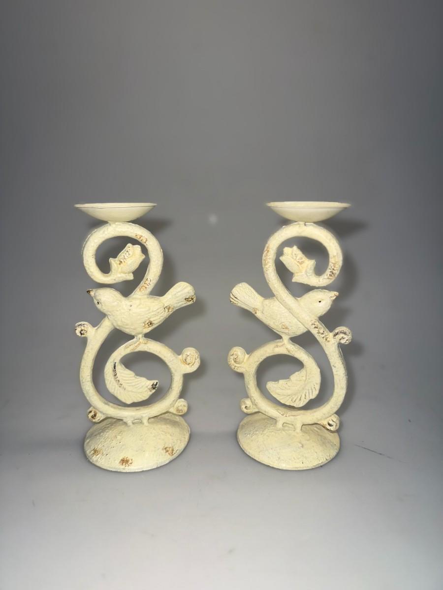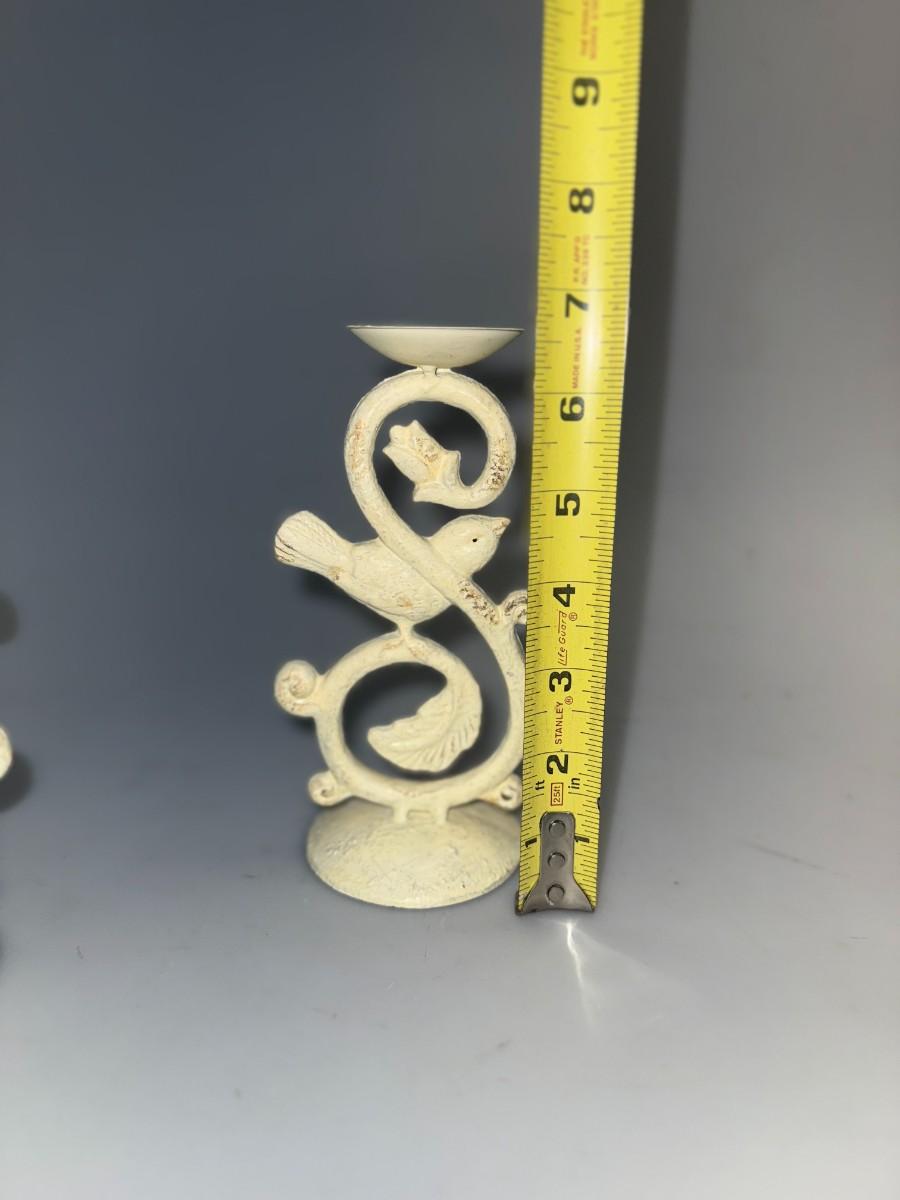 2 RUSS BERRIE CAST IRON SHABBY CHIC TEA LIGHT / BALL CANDLEHOLDER W/BIRD Vintage