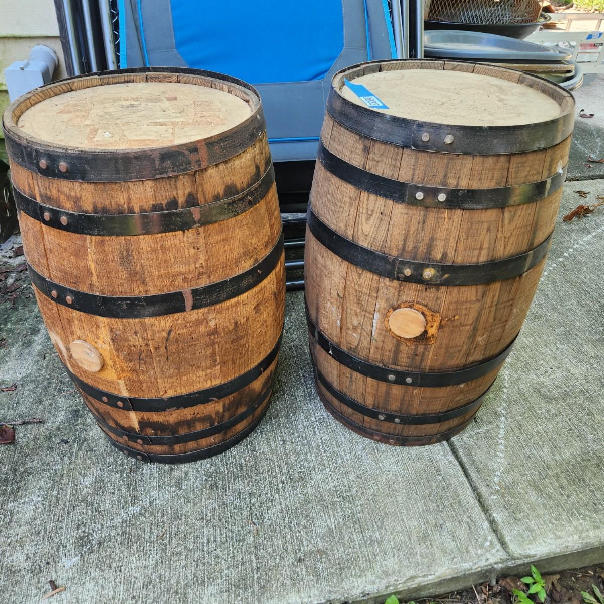 2 Rustic Wooden Wine Barrels Side Tables 22x13 Cabin Man Cave Decor