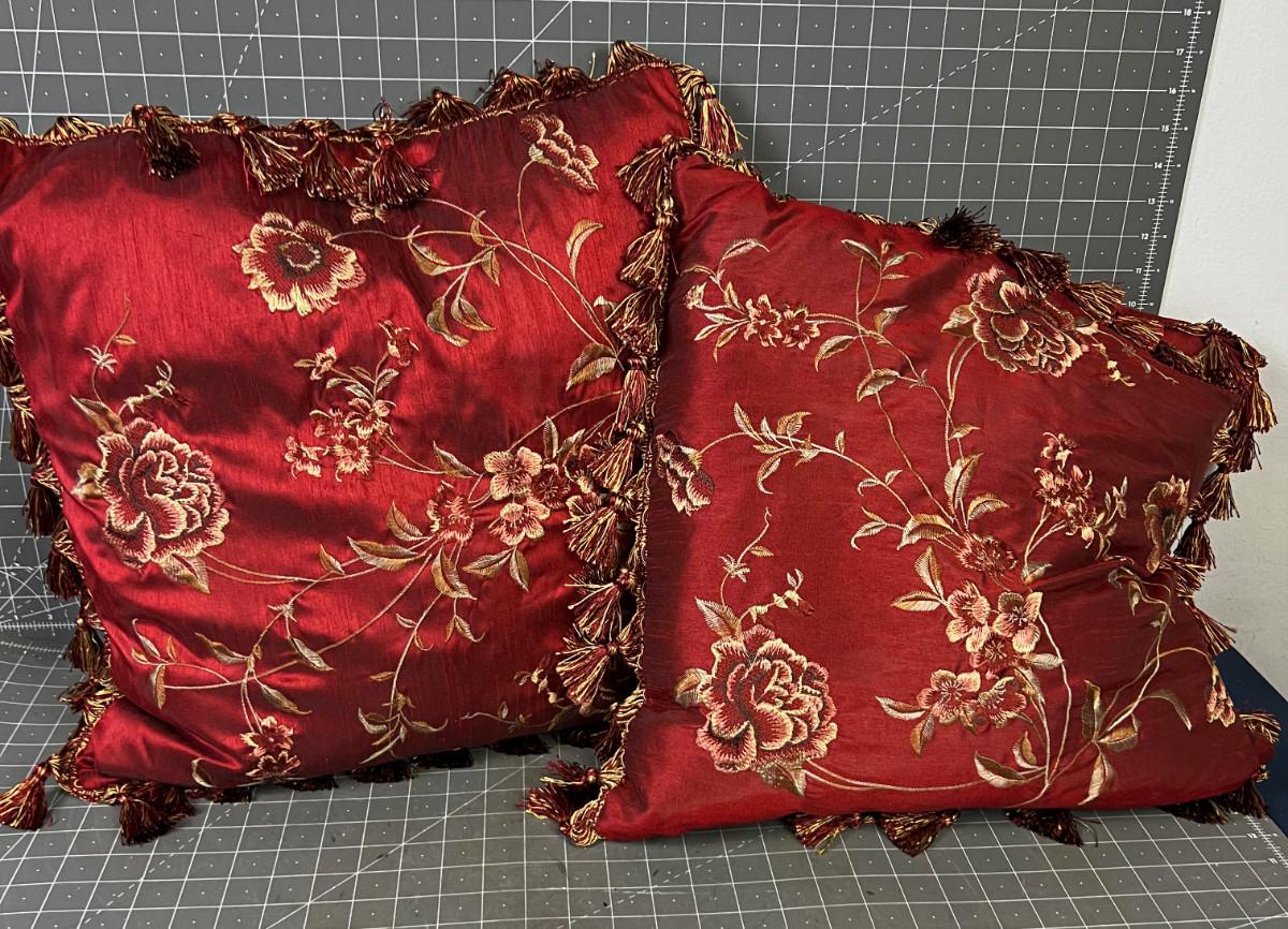 2 Satin Burgundy Throw Pillows