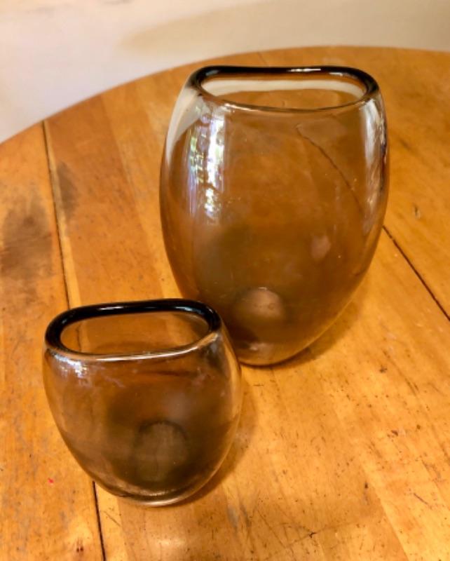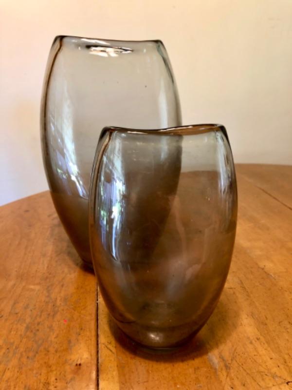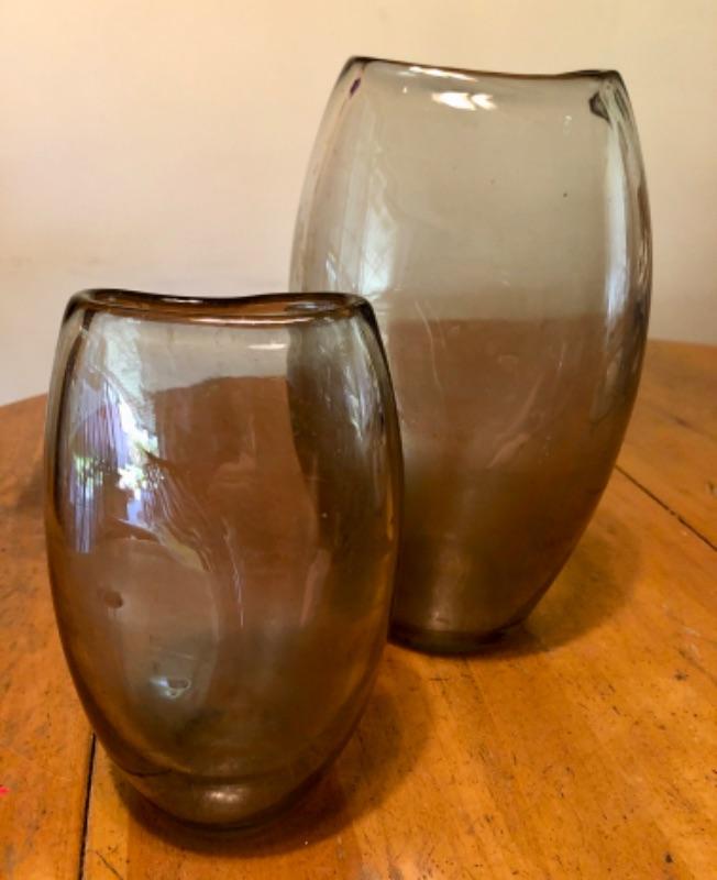 2 Scandinavian Art Glass Mid-Century Vases, smokey gray