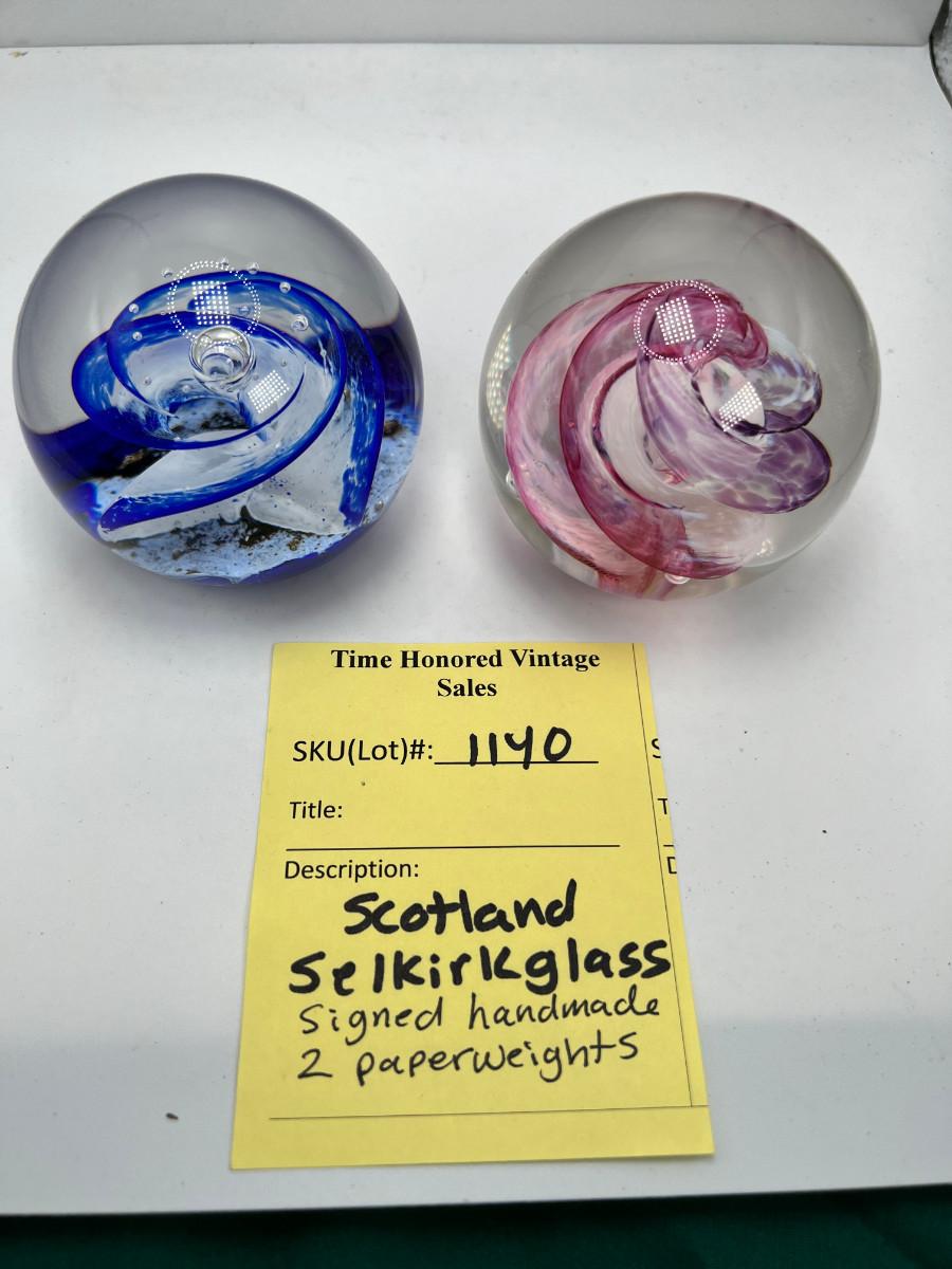 2 Scotland Selkirk Glass  signed marbled paperweights