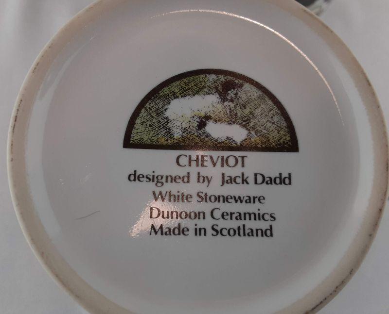 Nicely detailed Jack Dadd cow design from Dunoon Ceramics with Cheviot series. Measures 4.5in. tall and 3in. diameter.