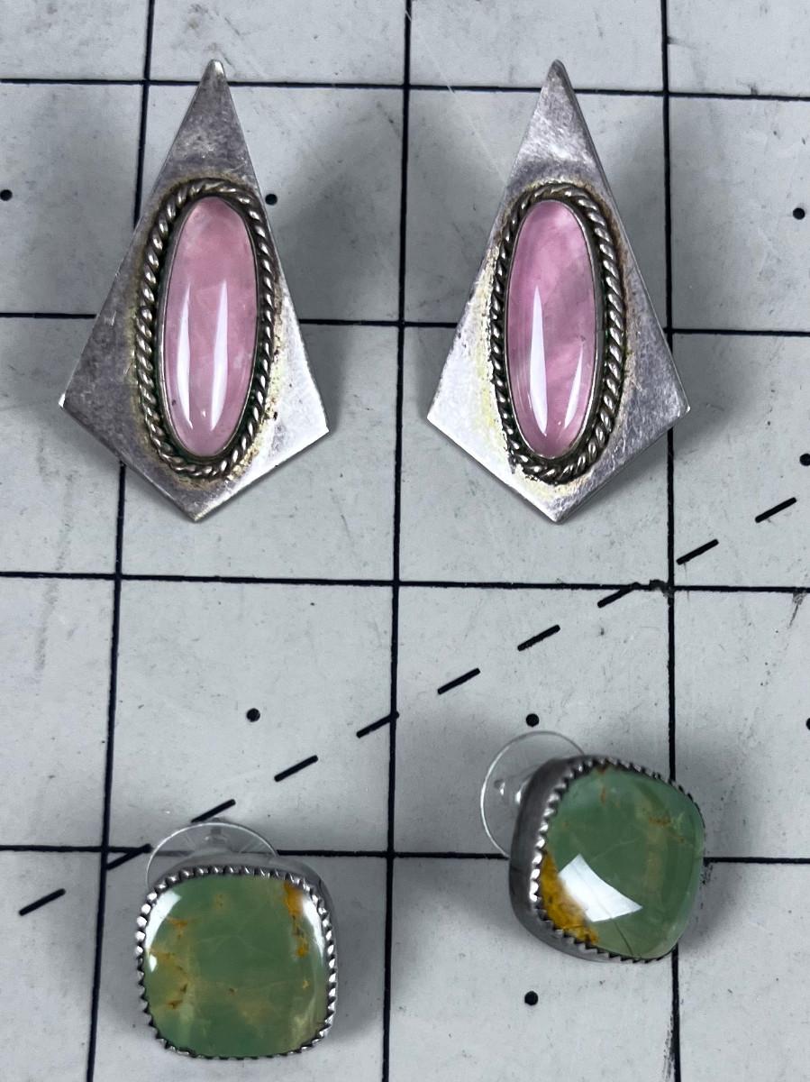 2 Set of Earrings, Sterling Jasper and Pink Rose Quart