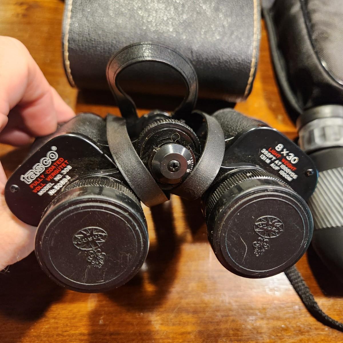 2 Set of Tasco 308 8x30 Binoculars w Case & Lumina Rubicon 8x-20x25cm