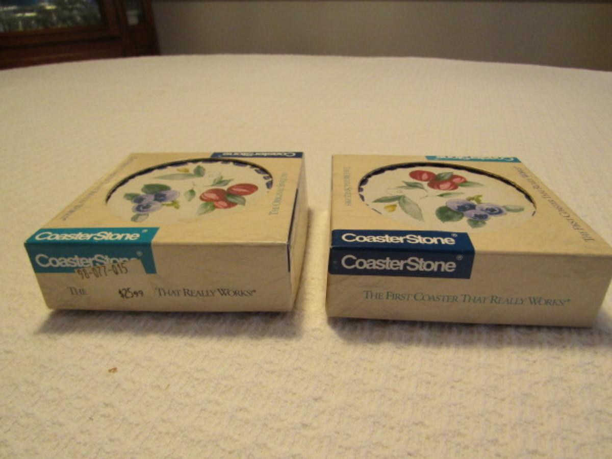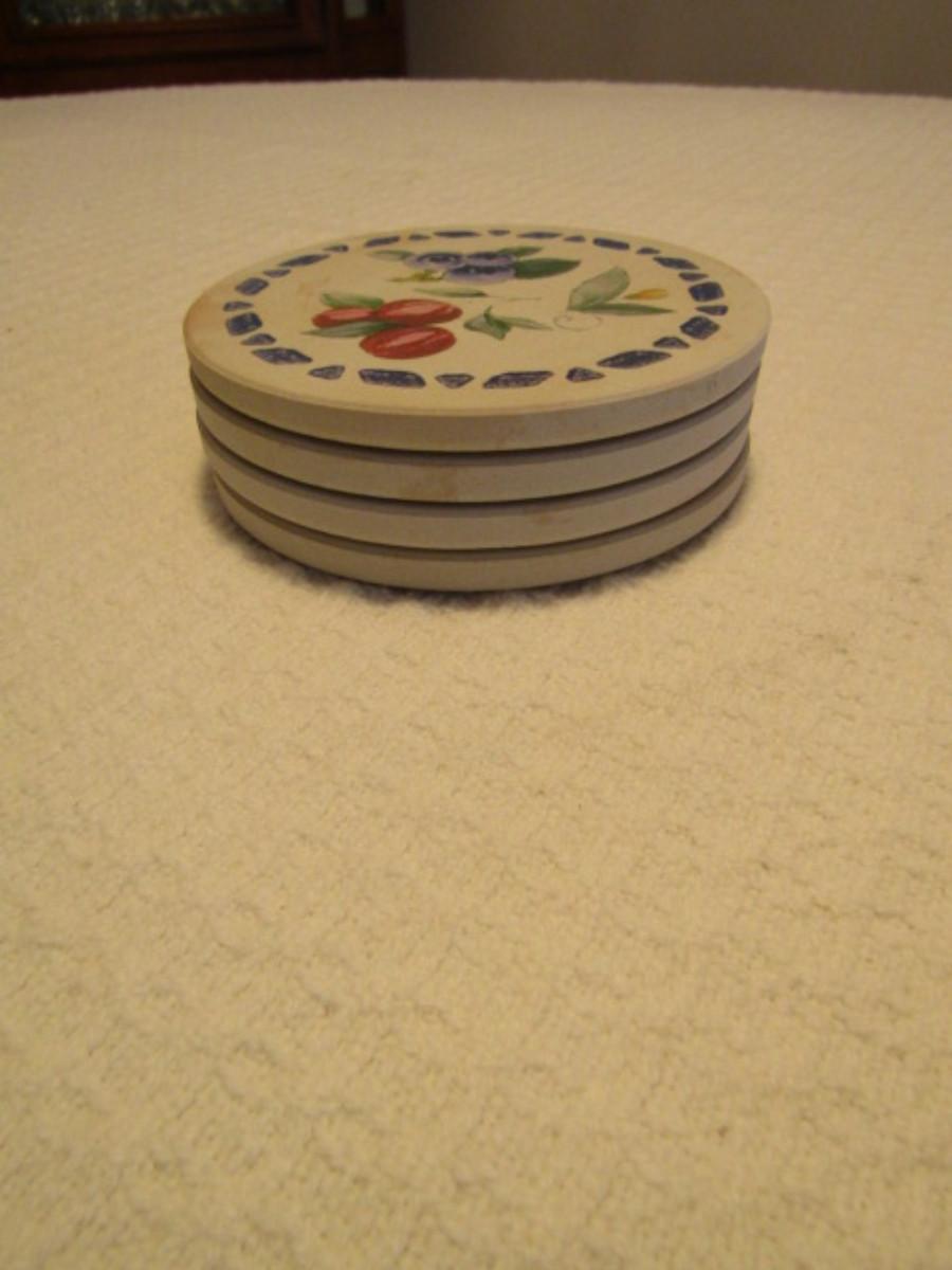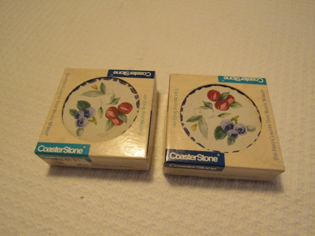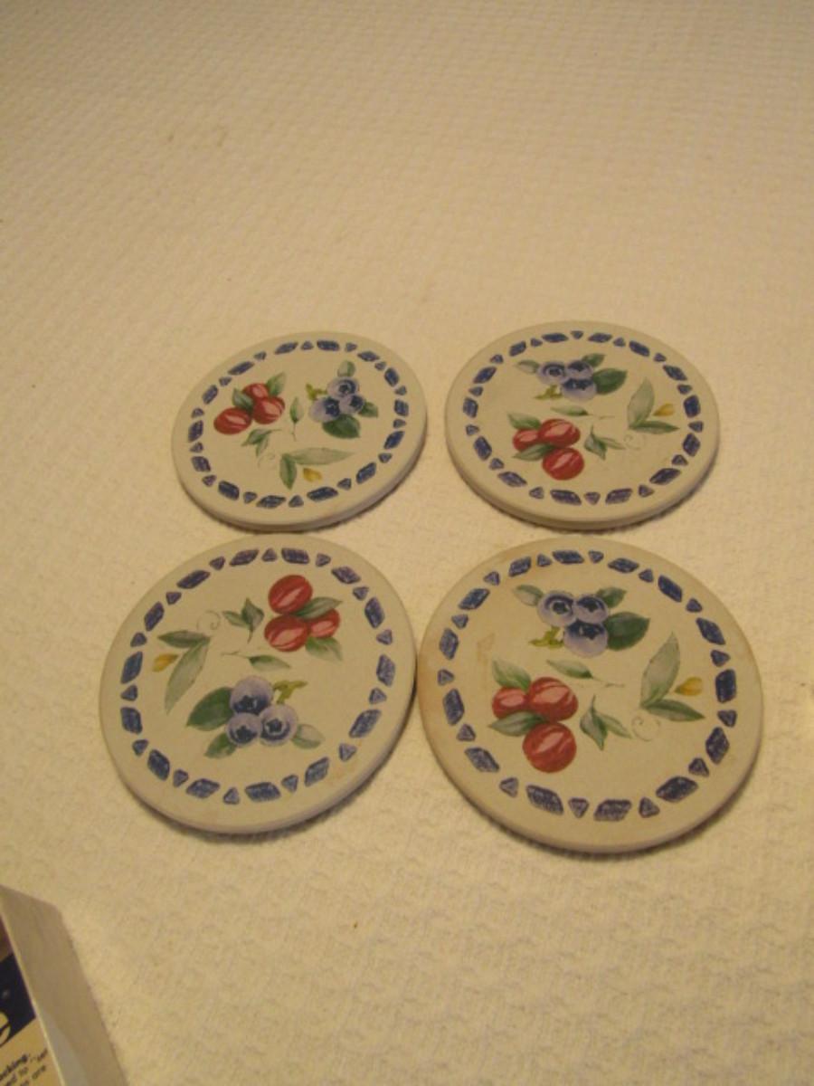 2 Sets (4 Pieces Each) Stone Coasters- Fruit Theme. Some have been used and need to be cleaned.