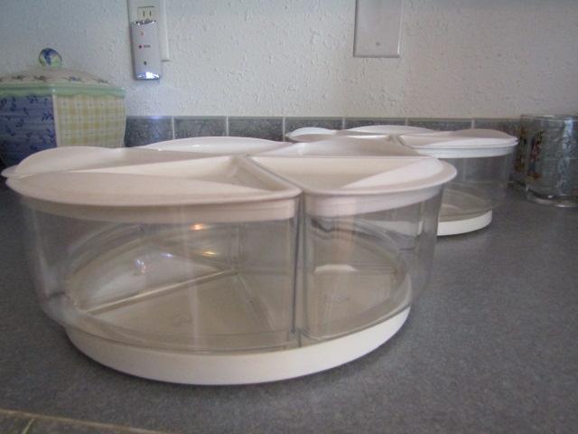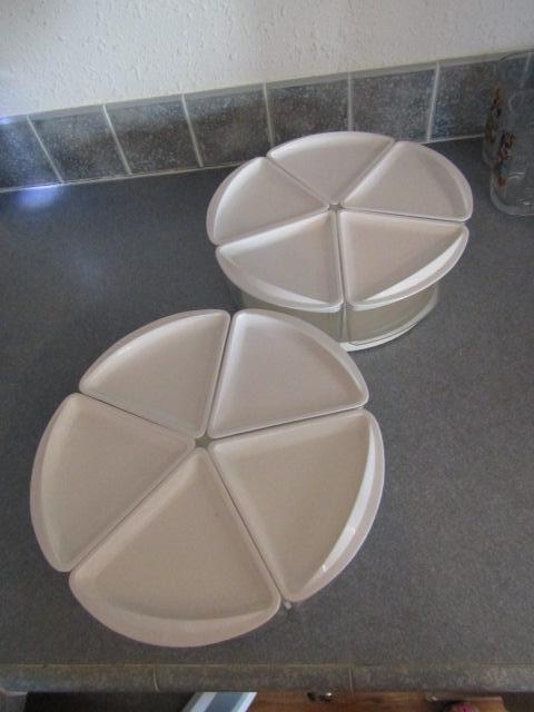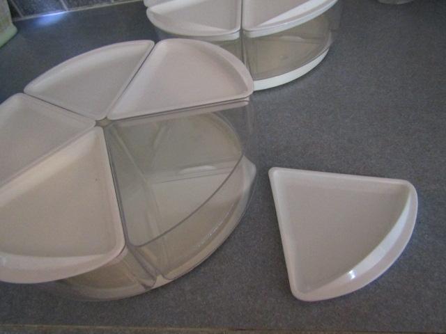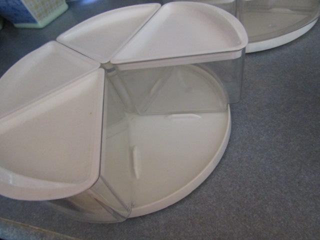 2 Sets (5 Pieces Each) Wedge Shaped Canisters on Lazy Susans- 10" Across, 4" High
