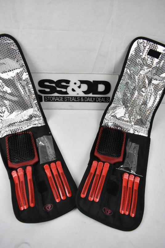 2 Sets Hot Hair Tools Cool Carry Bag with Brush, Comb & Styling Clips - New