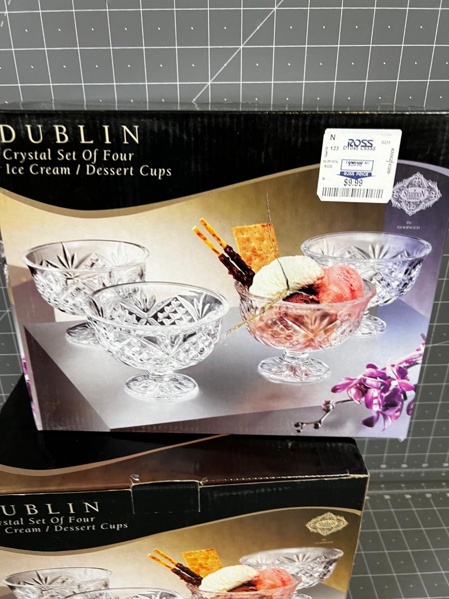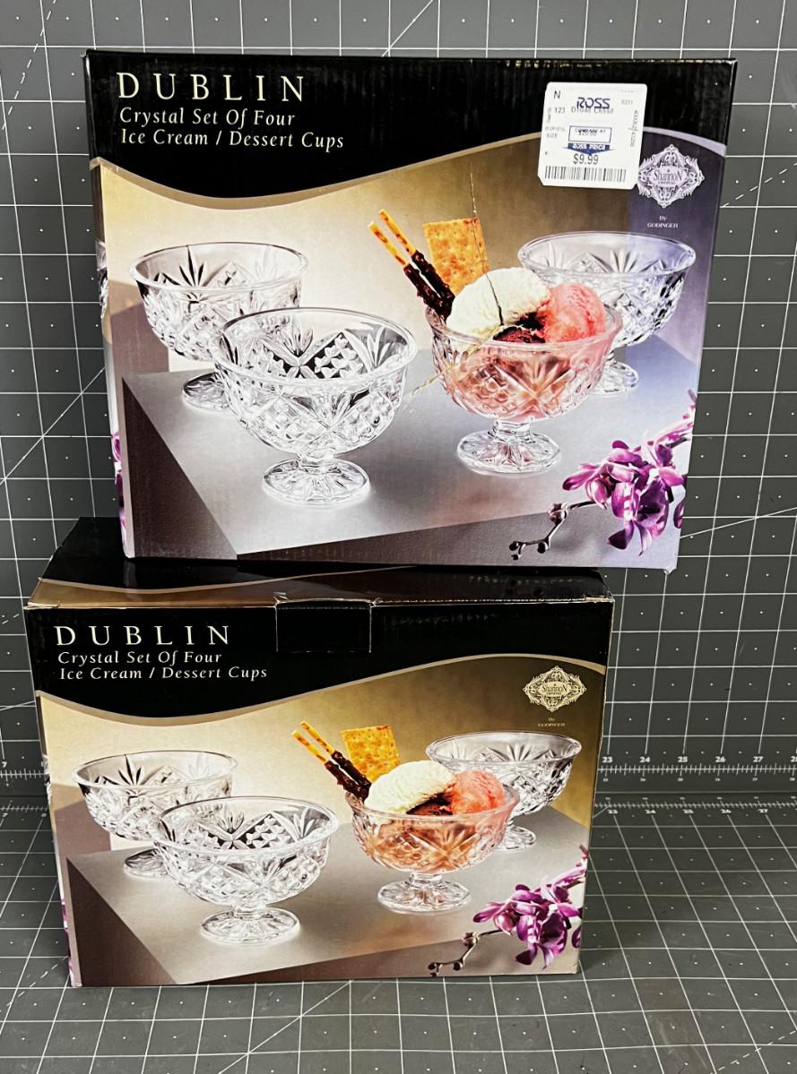 2 sets of 4 Ice Cream Crystal Dishes