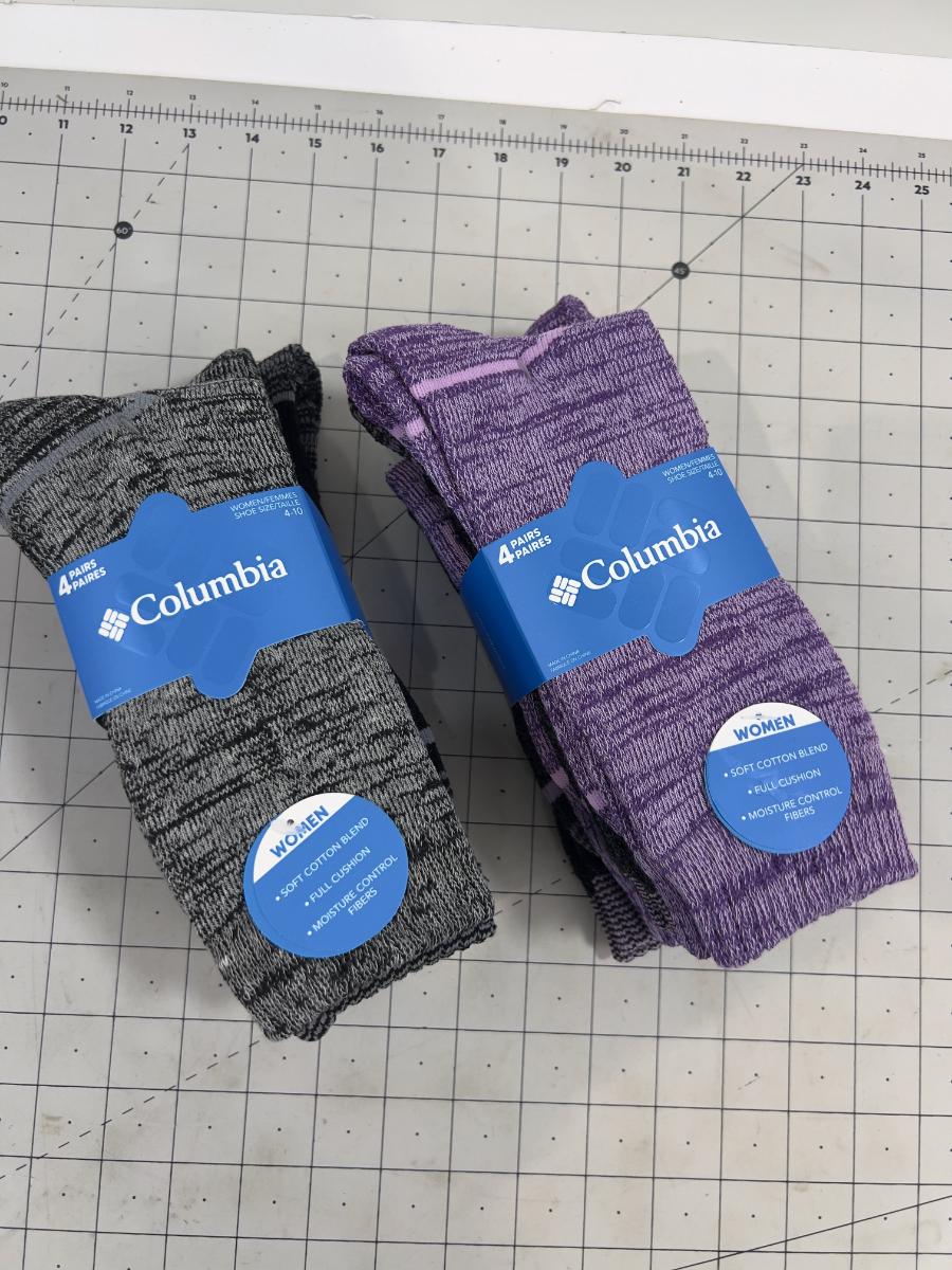 2 Sets of 4 - Total Women's Black, Gray, Purple SOCKS by Columbia