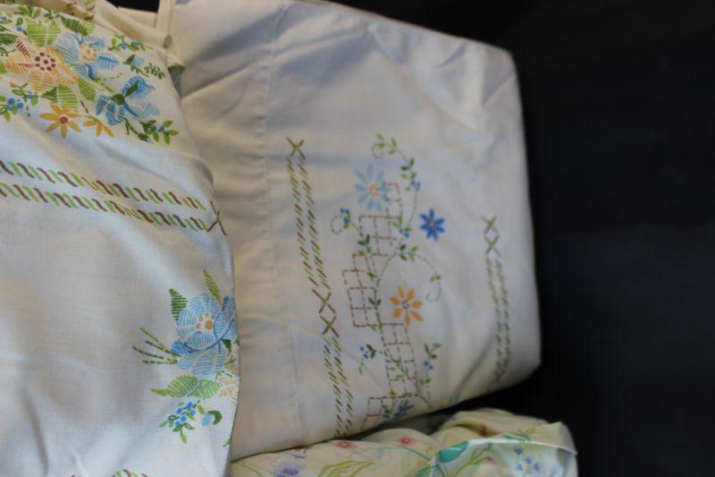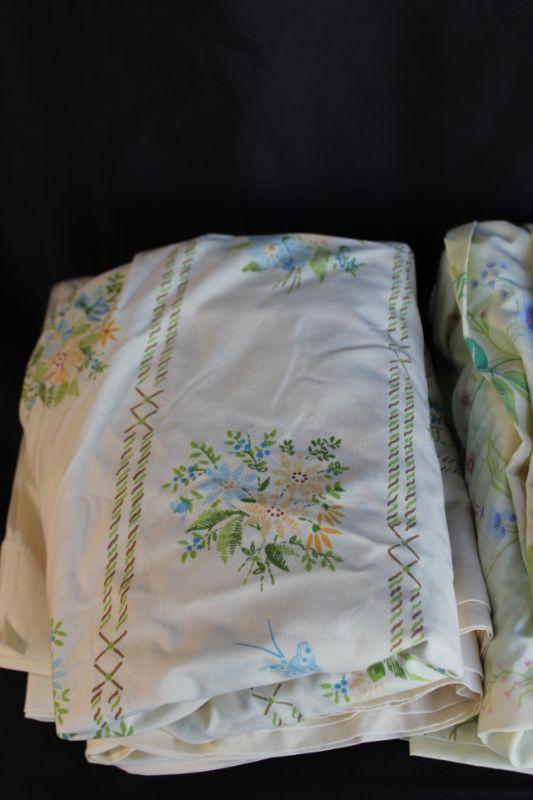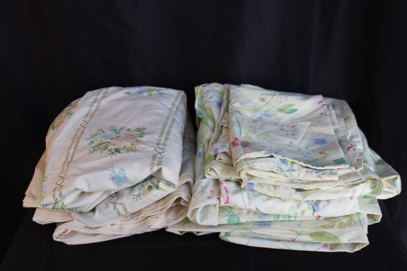Two sets of full size bed sheets. The yellow background set comes complete with 2 pillow cases. Did not notice any spots or stains.