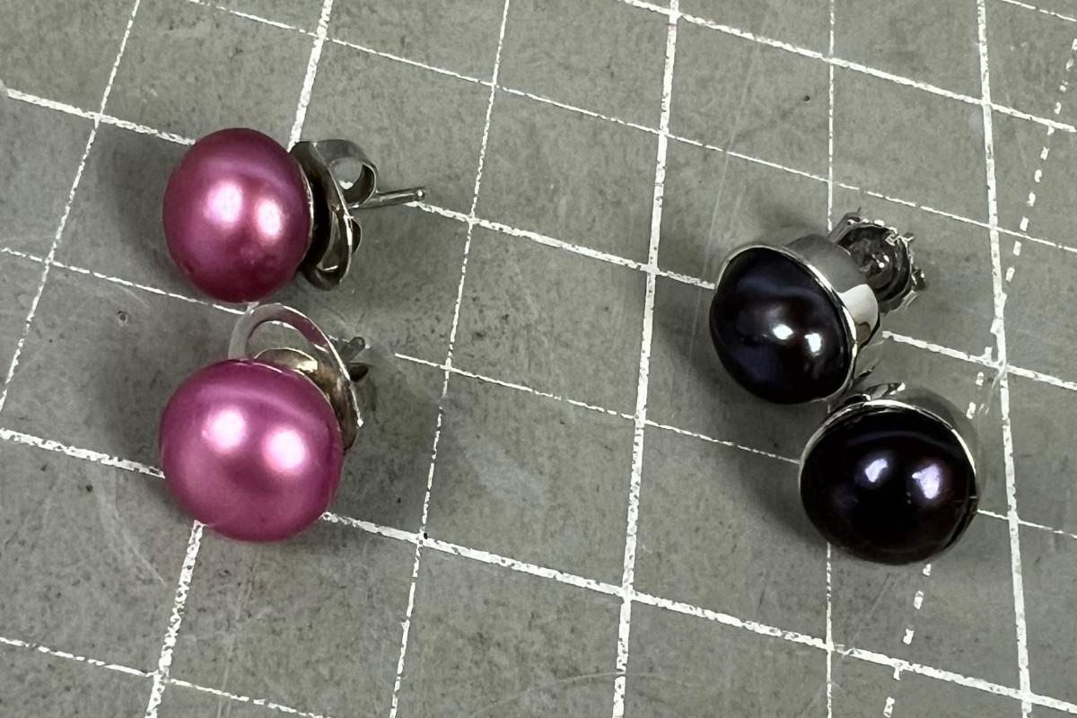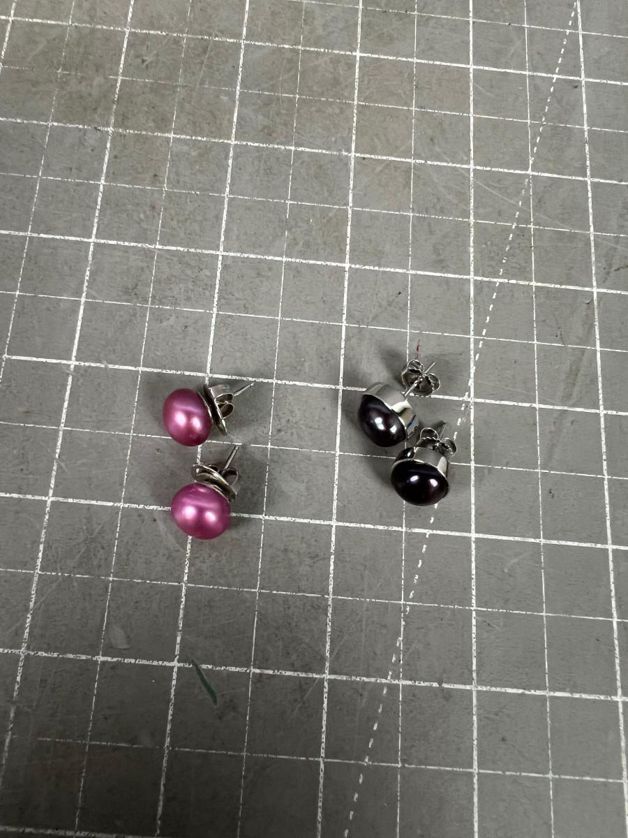 2 Sets of Pink & Purple Pearl Earing Set in Silver