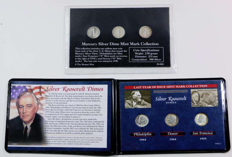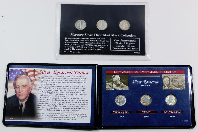 2 Sets of Silver Dimes - Mercury and Roosevelt Silver Dimes.