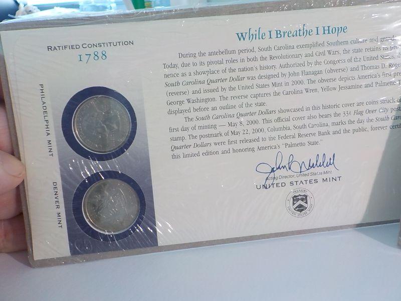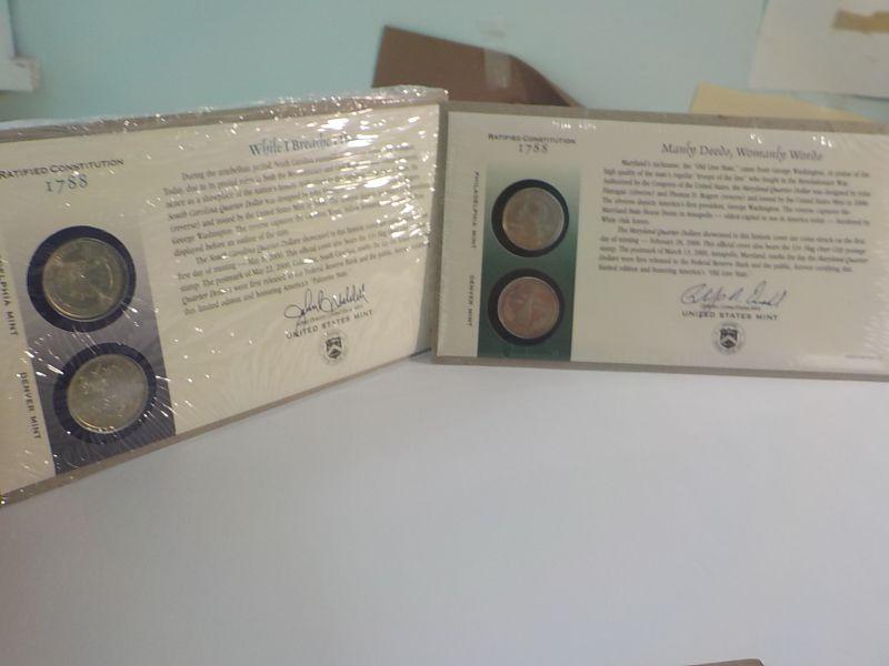 2 Sets of state quarters, non-circulated Maryland and South Carolina.