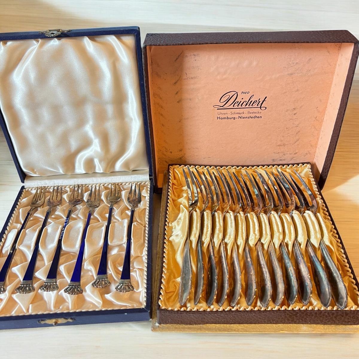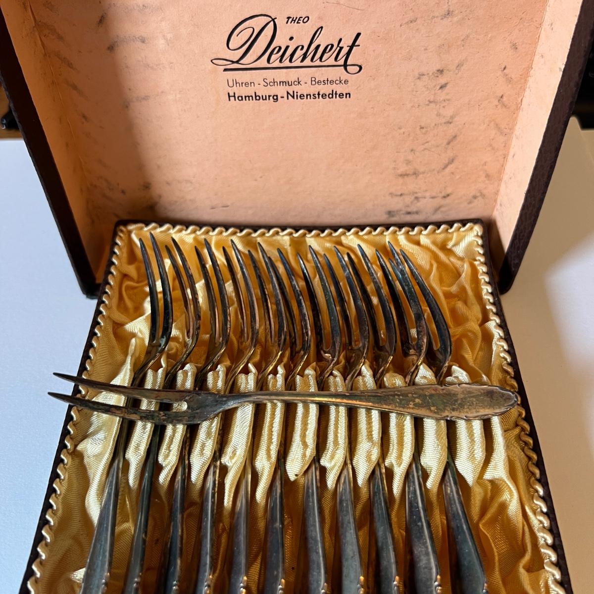 2 Sets Vintage MCM Forks - Ela Denmark Sterling, Deichert German Plated