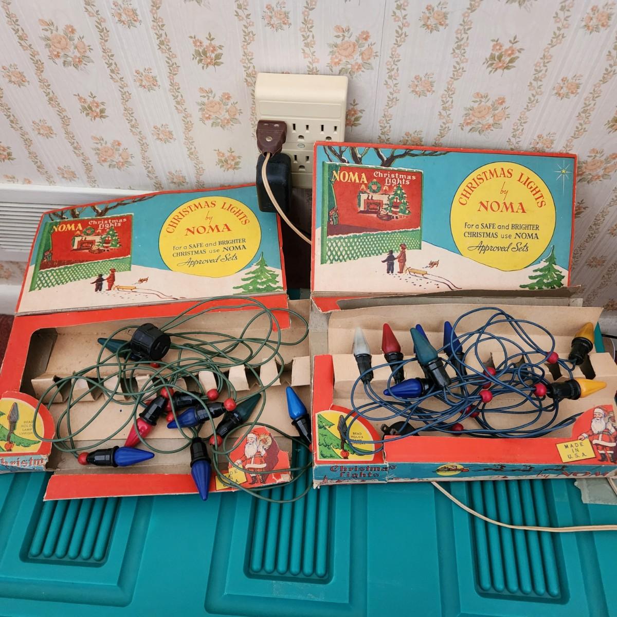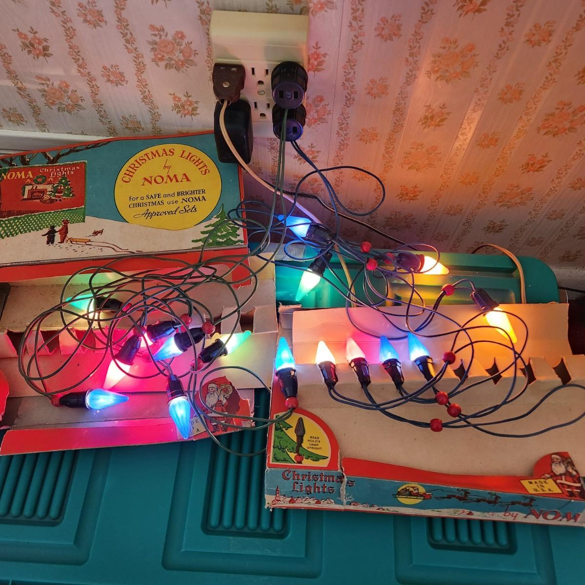 2 sets Vintage Noma Christmas Lamps Red Beaded String Lights