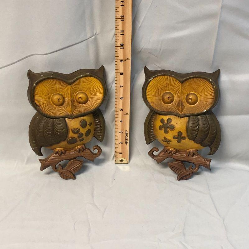 2 Sexton USA 1970 Metal Owl Wall Hangings