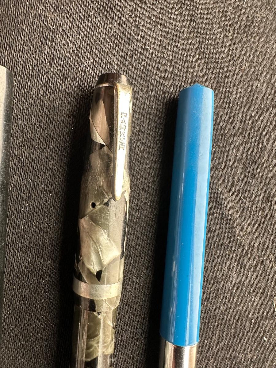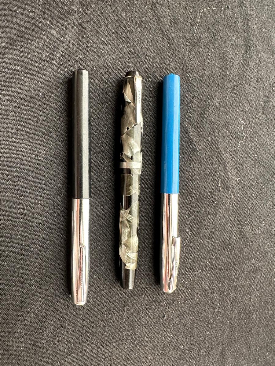 2 SHEAFFER AND 1 PARKER FOUNTAIN PENS PLUS LEAD IN A TIN
