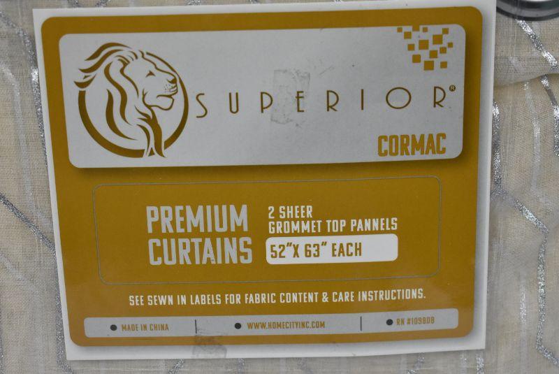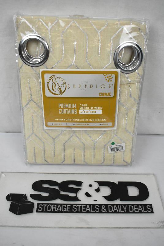Superior Premium Cormac Curtains, 2 Sheer Grommet Top Panels, 52" x 63" each, Ivory/Tan with Silver tone accents - New