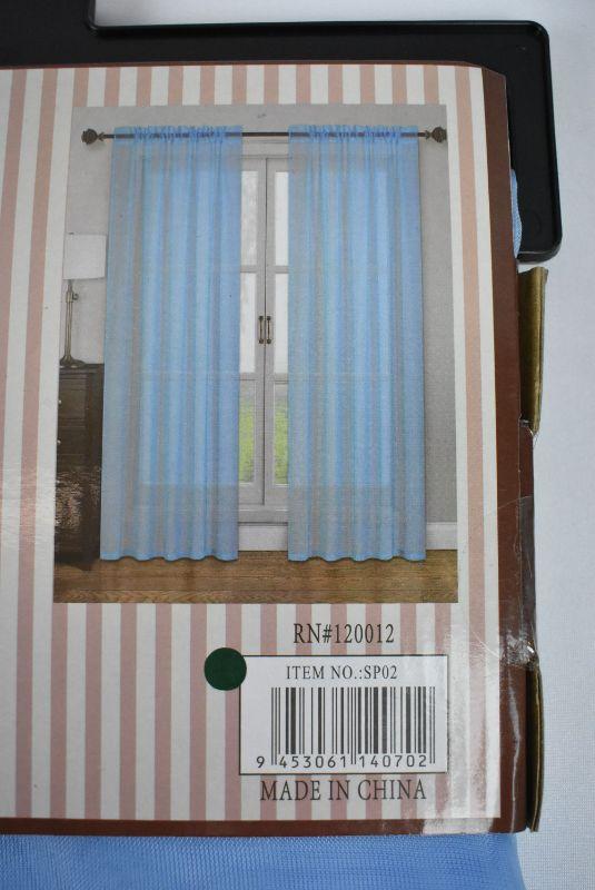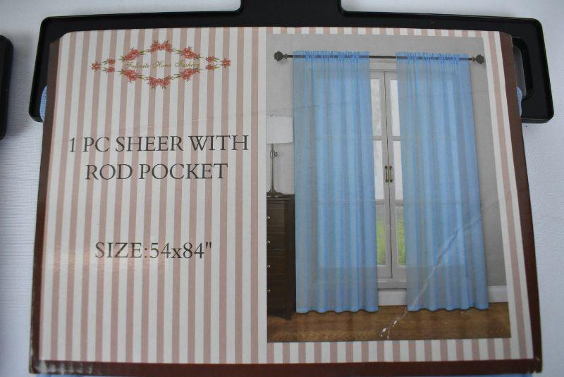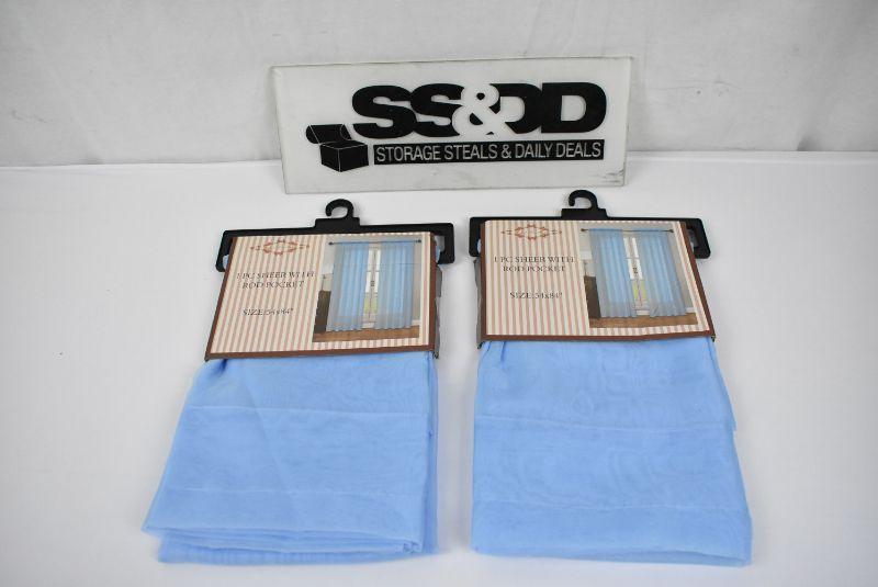 2 Sheer Rod Pocket Light Blue Window Coverings, 54" x 84" each - New