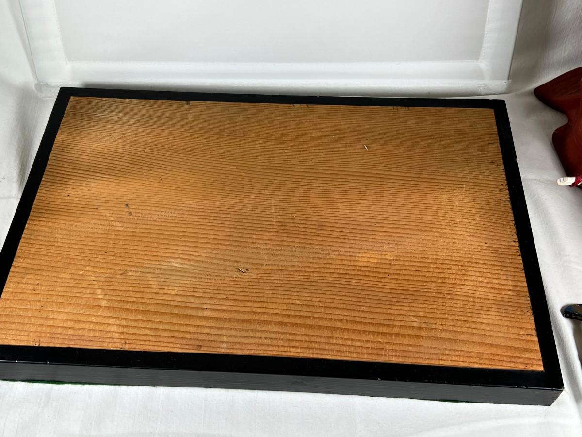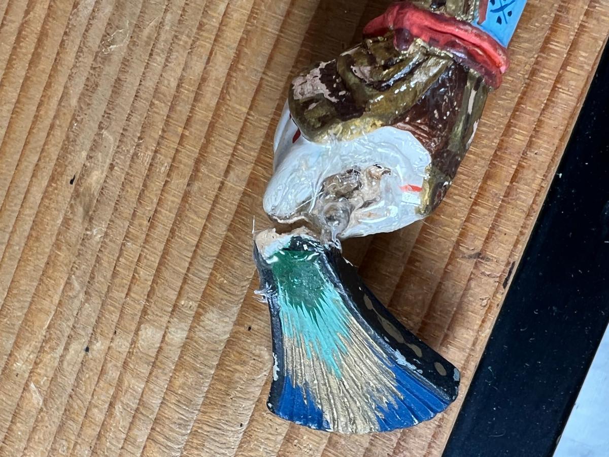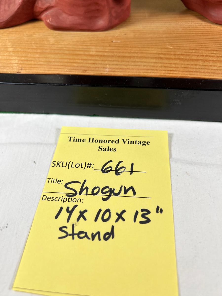 14 X 10 X 13 this figurine has the traditional removable props as well as the fan arm. The fan has been glued and may need to be repaired again. Very impressive this figure was guarded in a closed display case for at least 25 years.