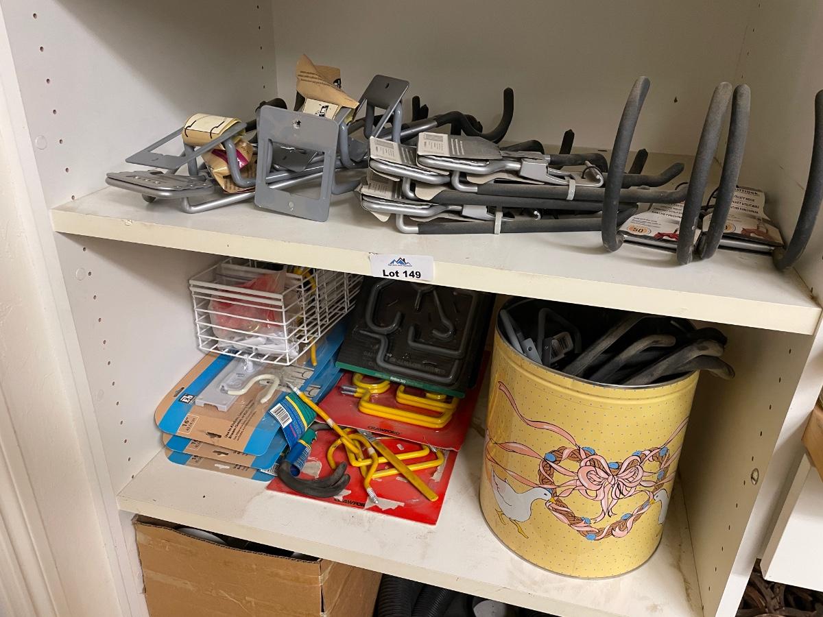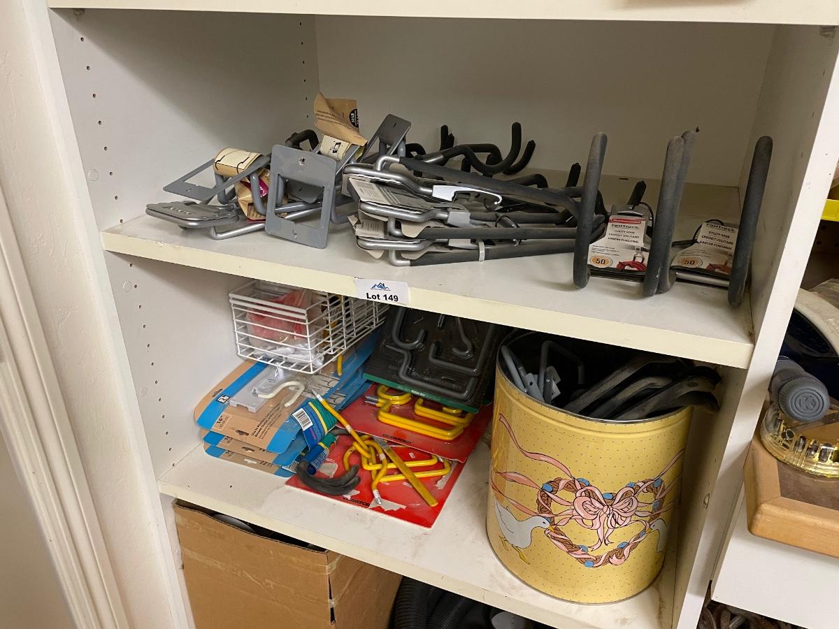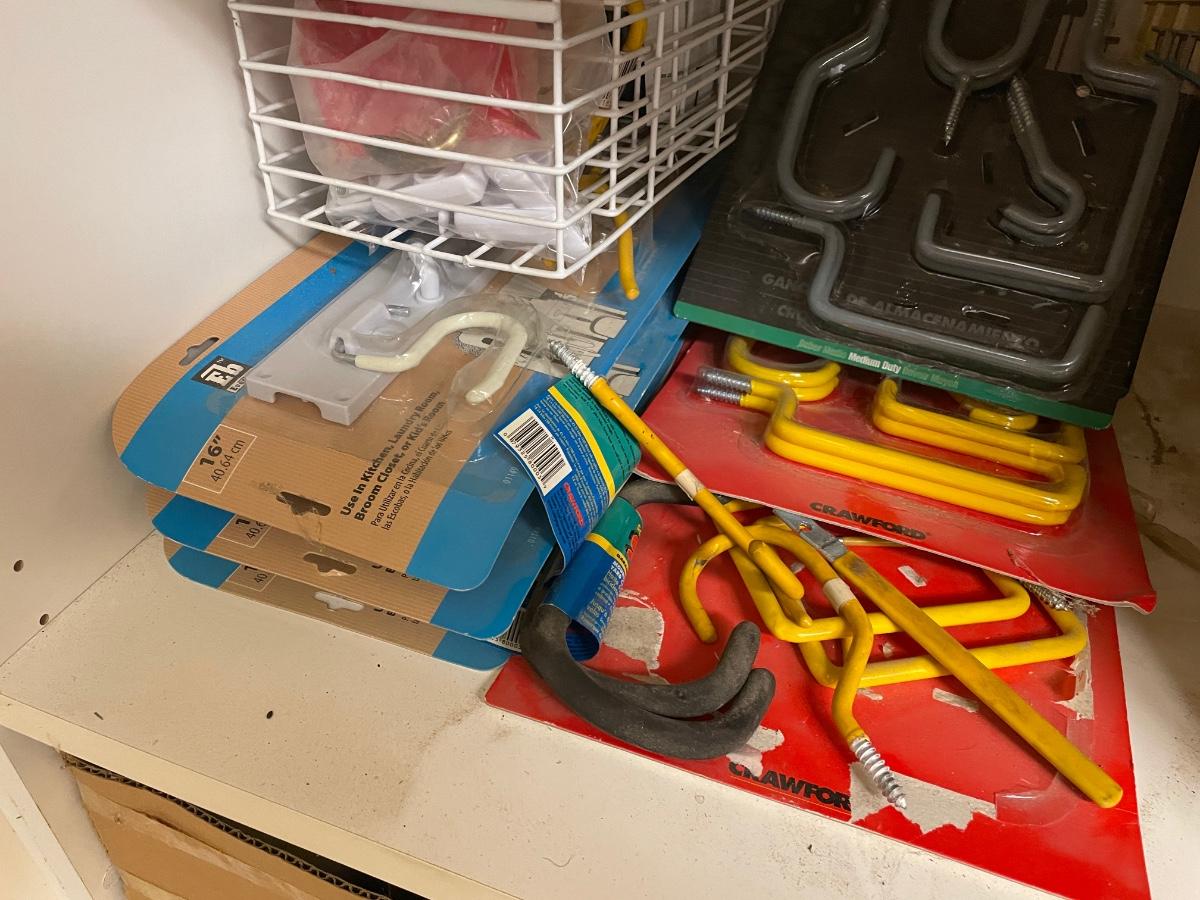 2 Shelves Full of Various Metal Hanging Hooks - Mostly New / DOZENS