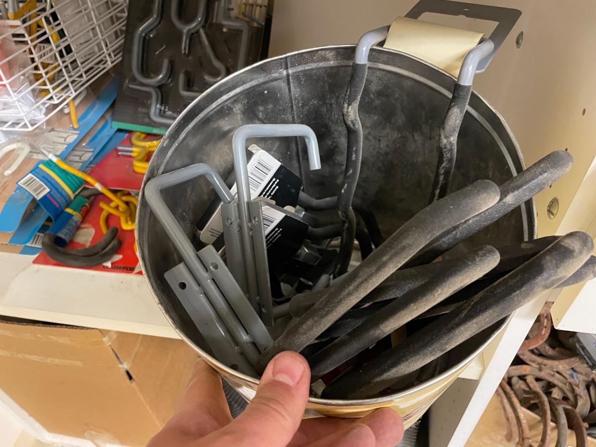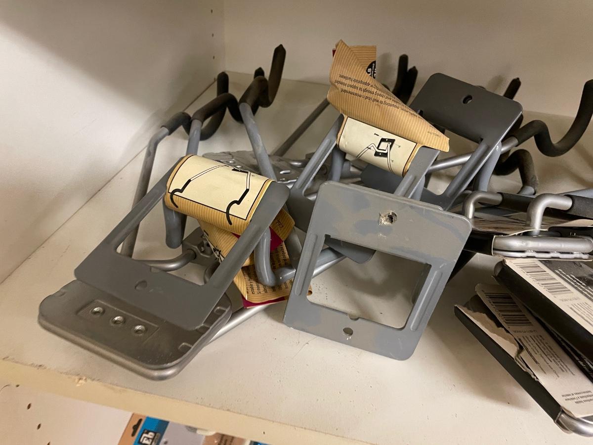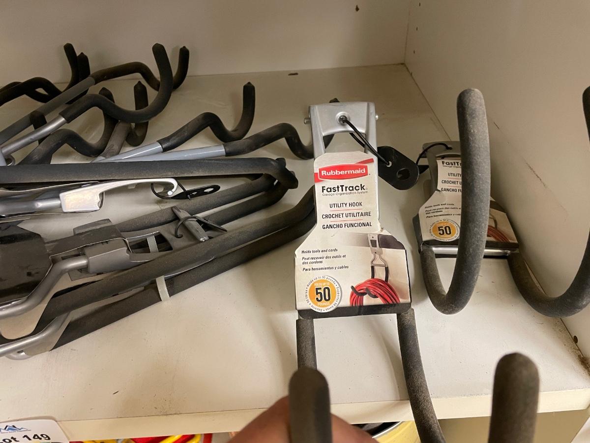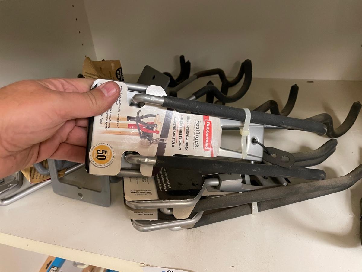 2 Shelves Full of Various Metal Hanging Hooks - Mostly New / DOZENS