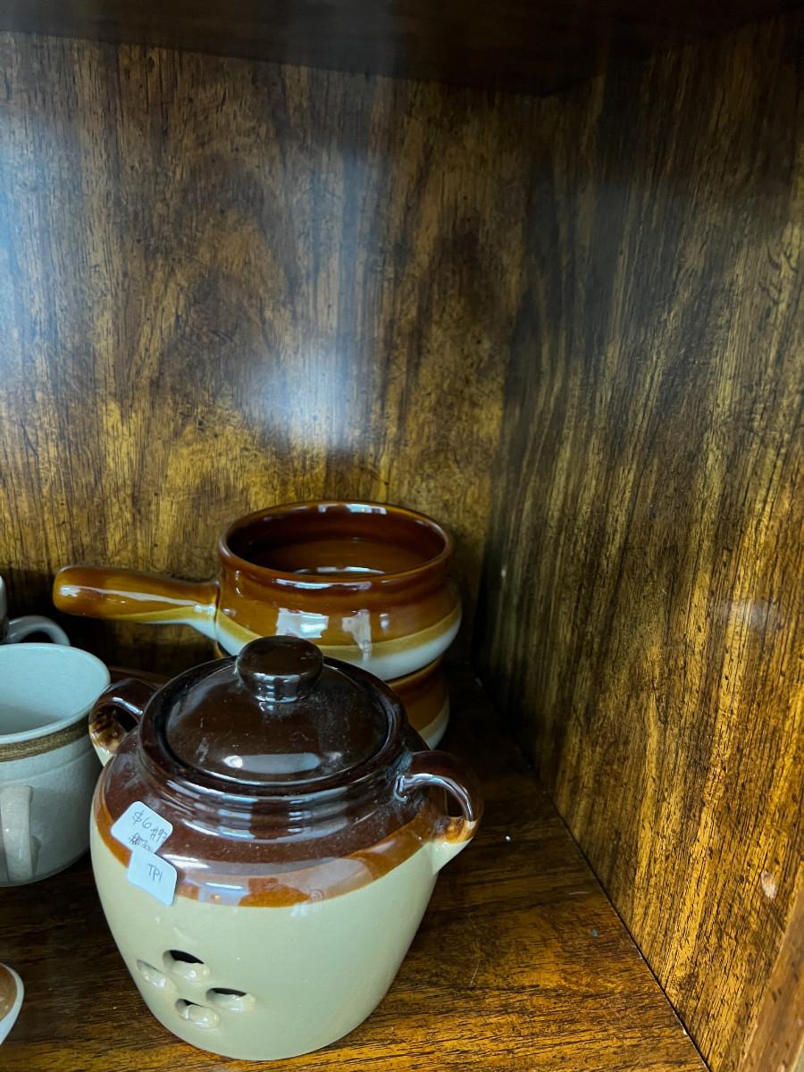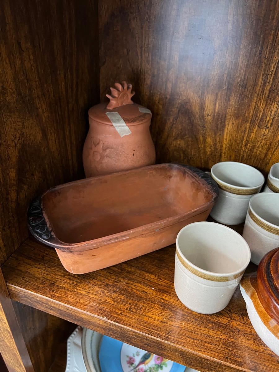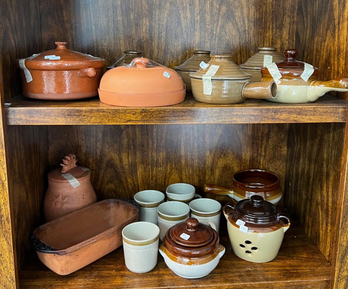 2 Shelves with of Stoneware, Baking Dishes, Serving Etc.