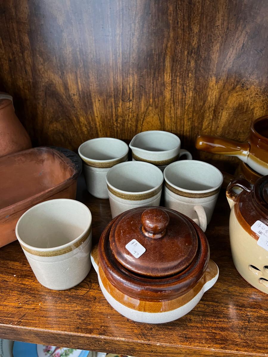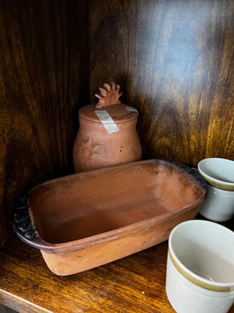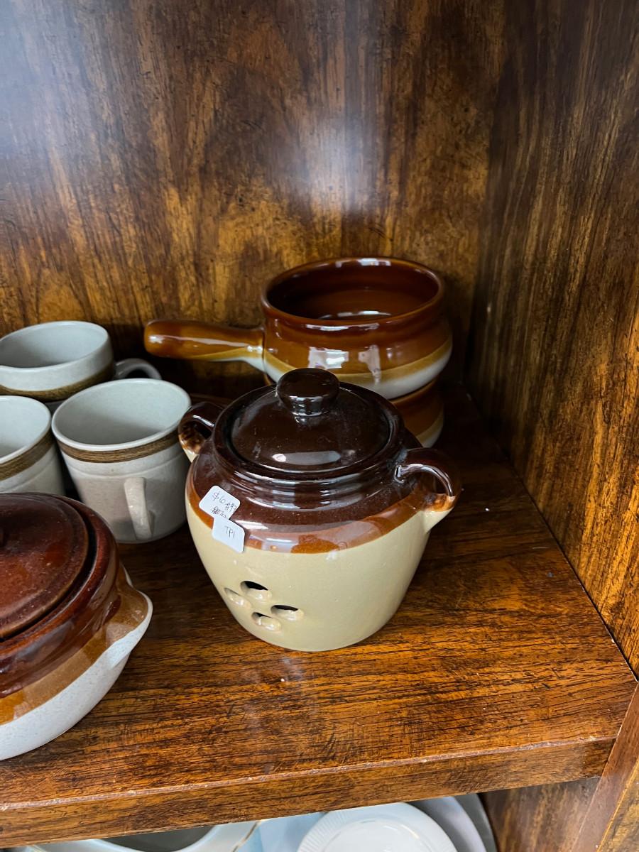 2 Shelves with of Stoneware, Baking Dishes, Serving Etc.