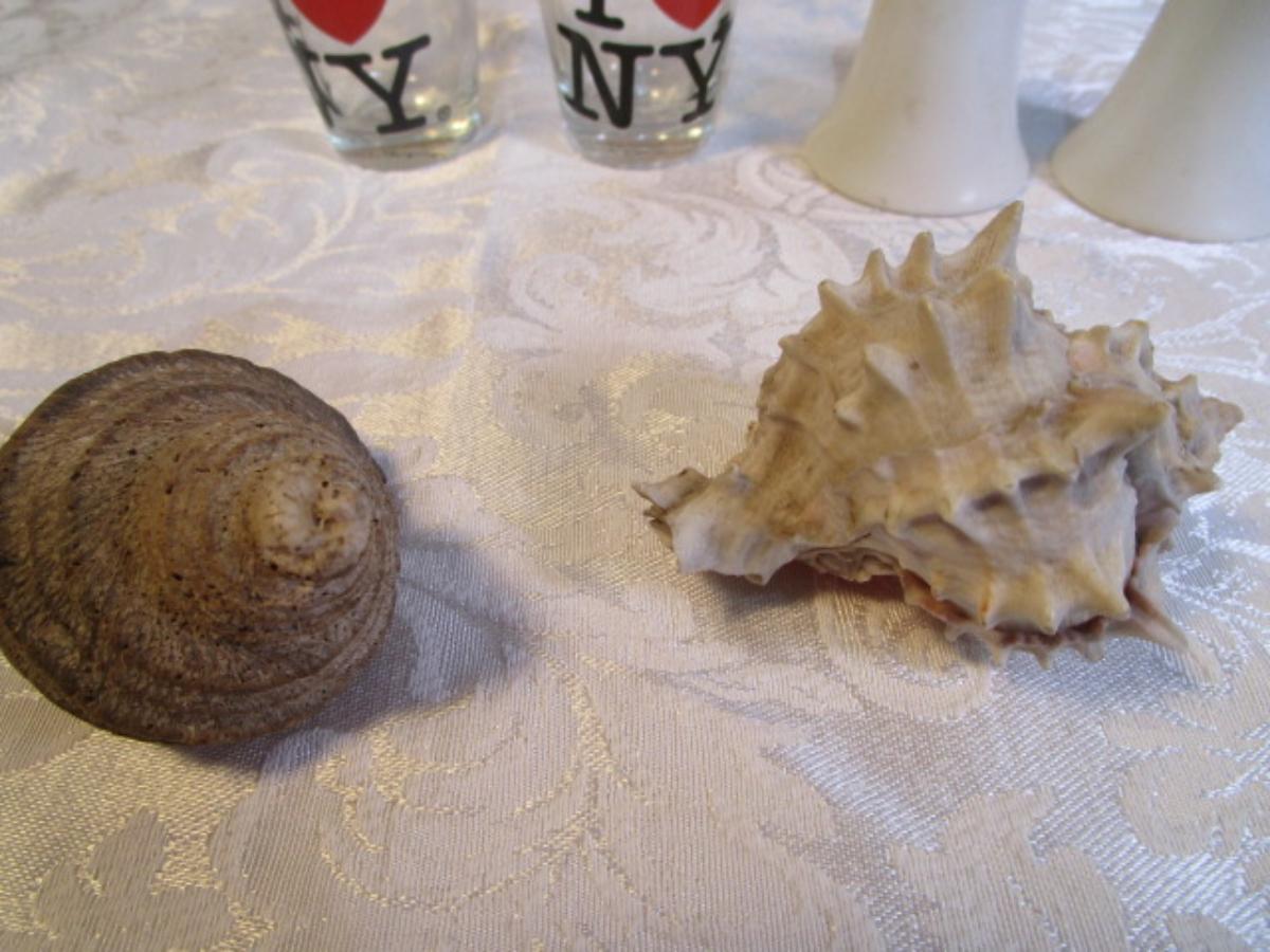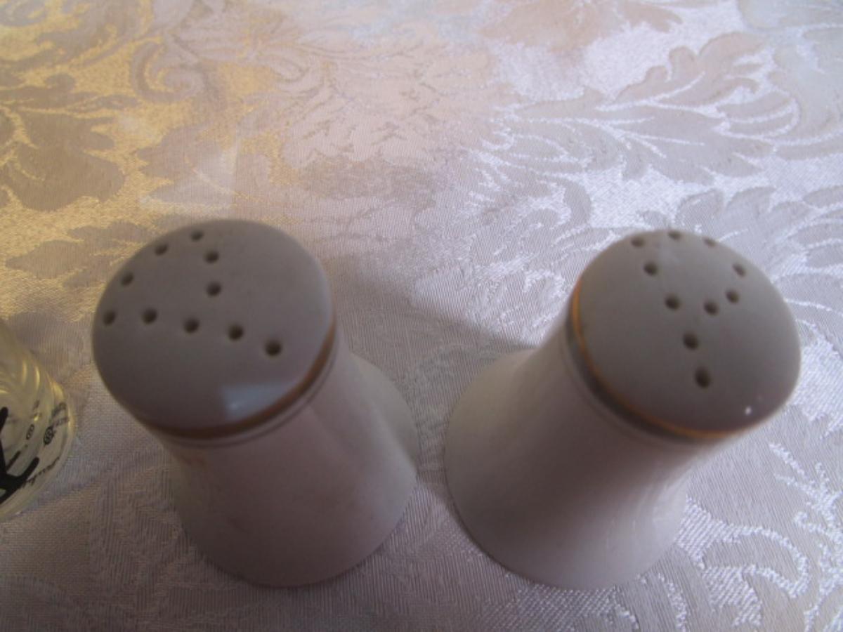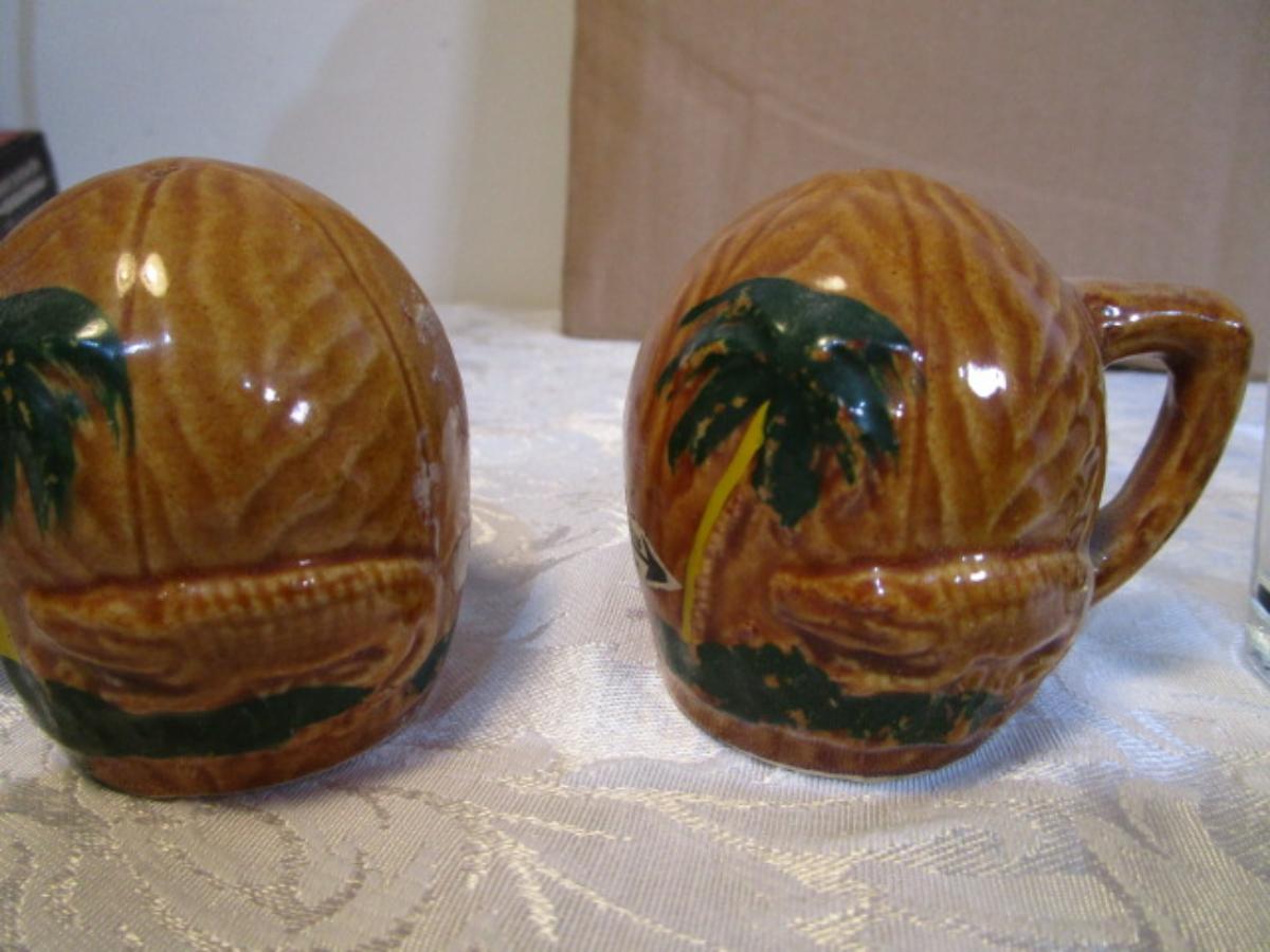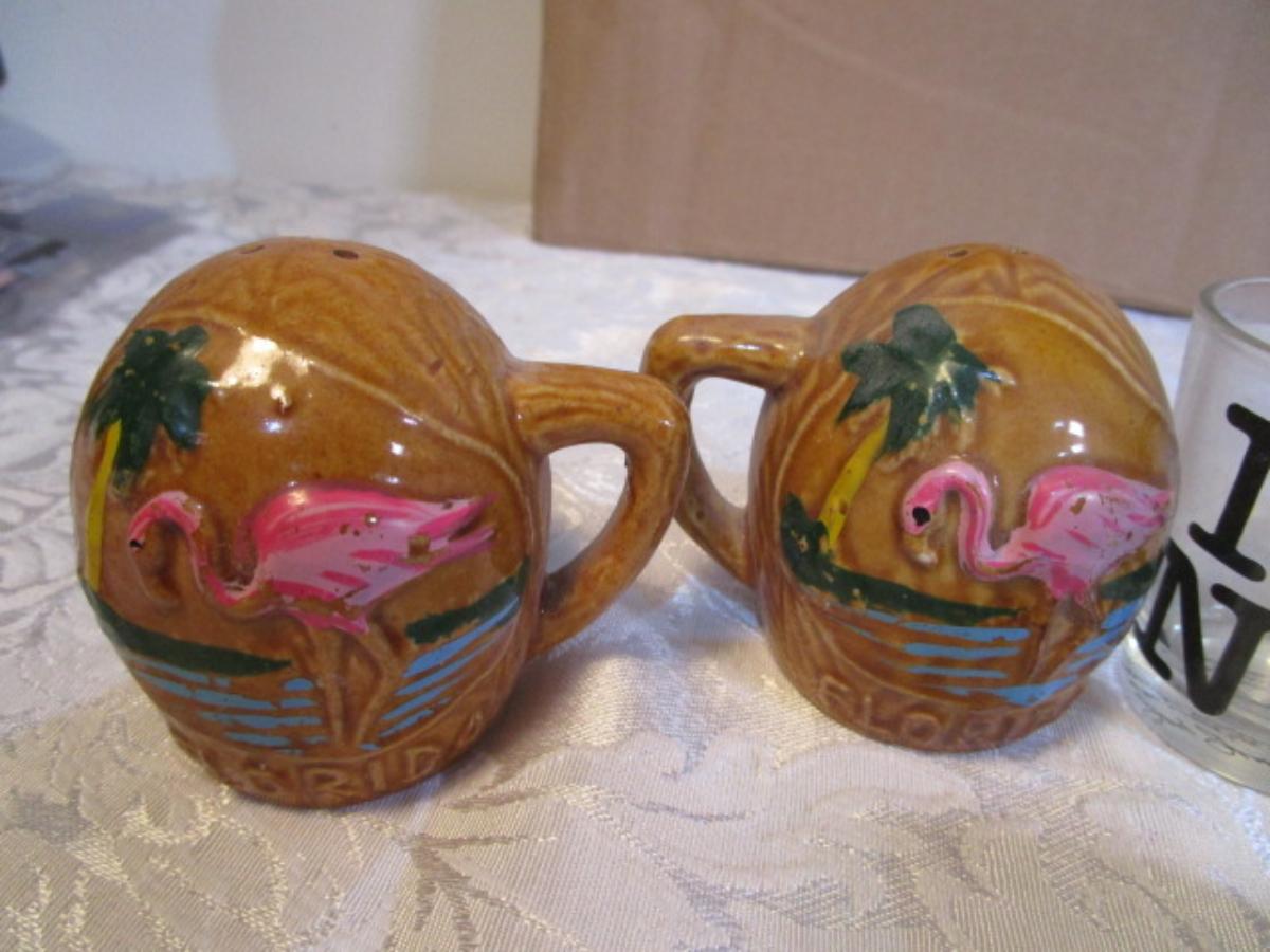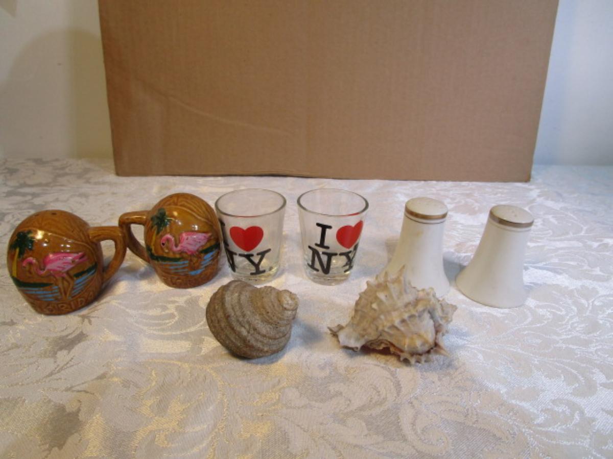 2 shot glasses, 1 set of salt & pepper shakers, 2 matching pepper shakers, 2 shells