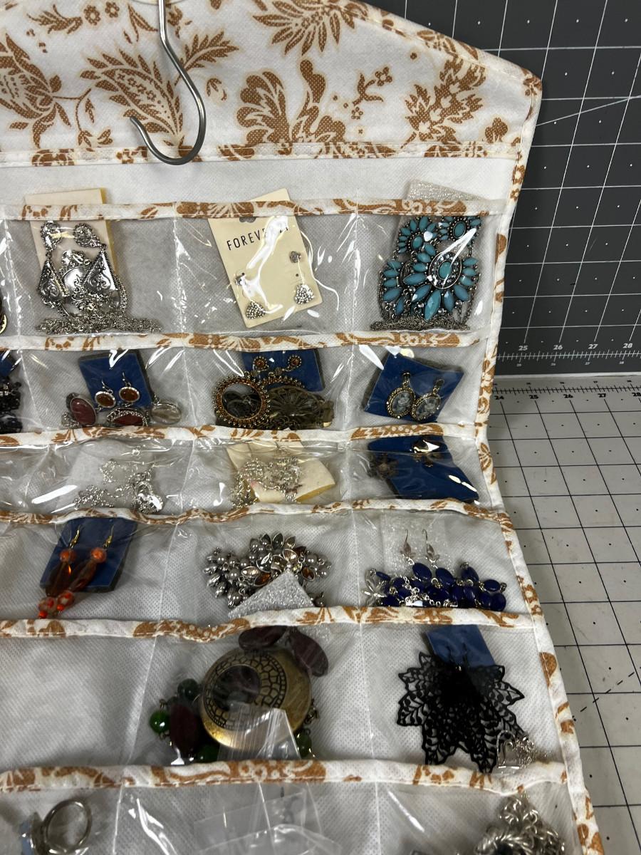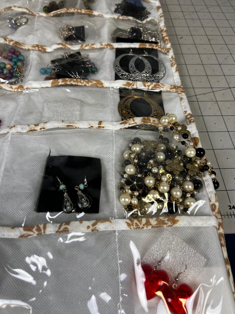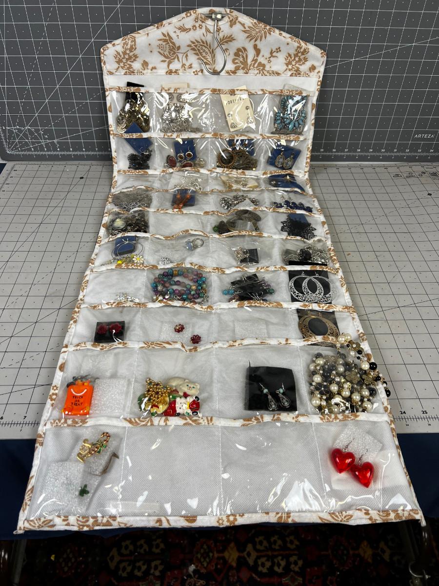 2 Sided Hanging Bag of LARGE COLLECTION OF COSTUME Jewelry