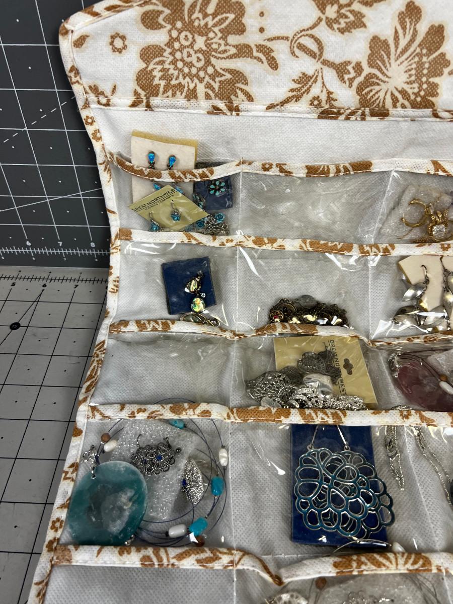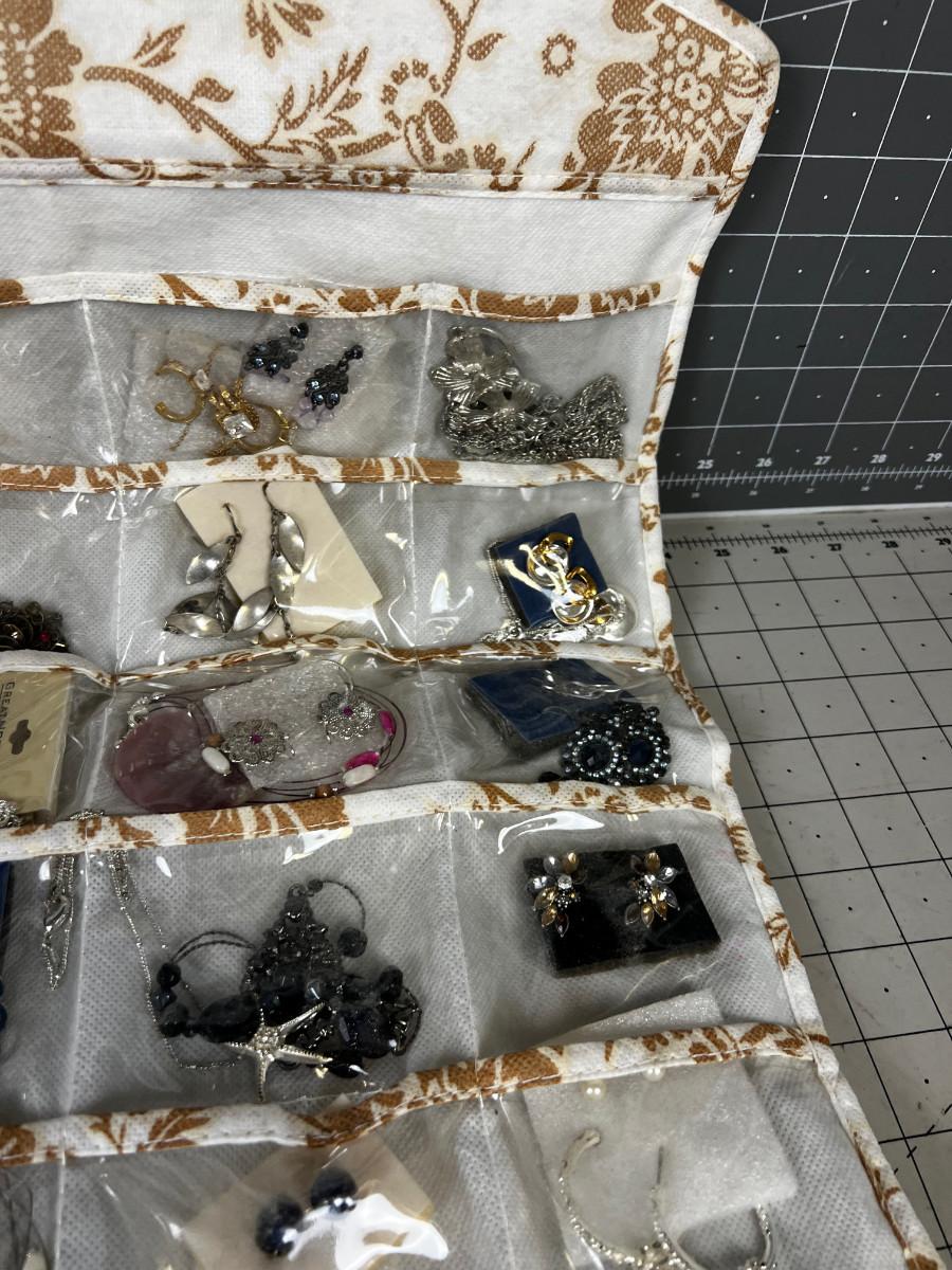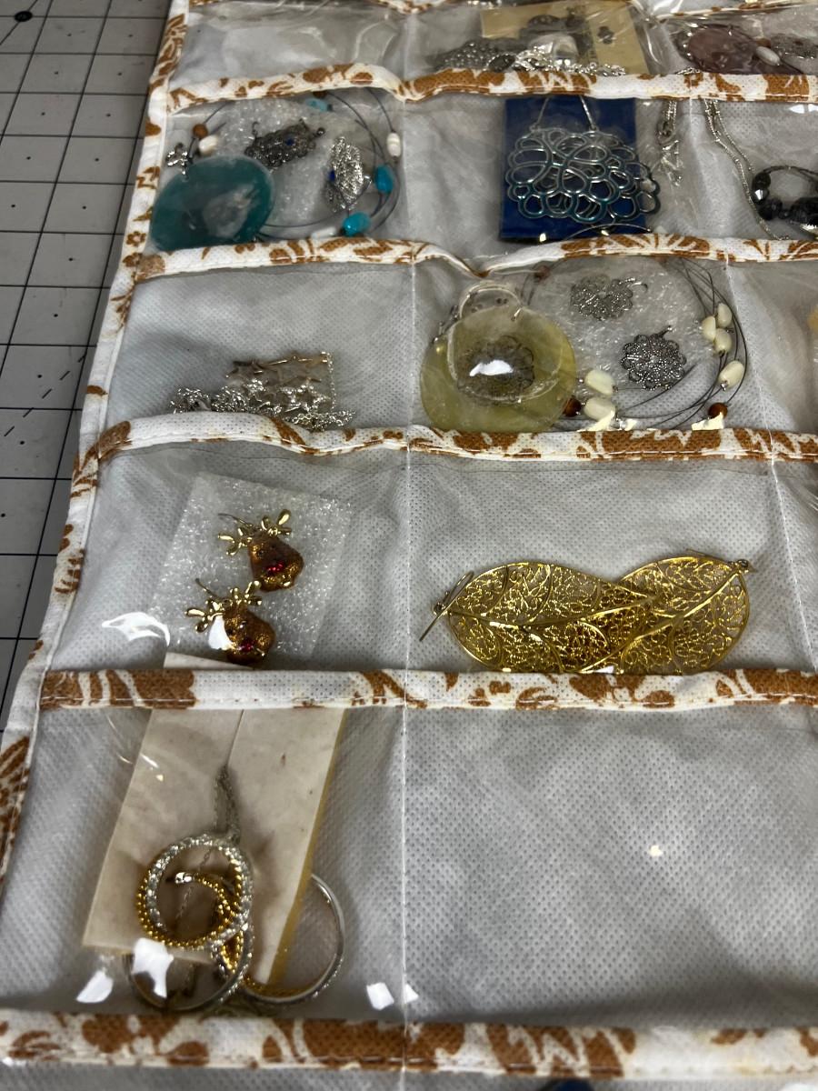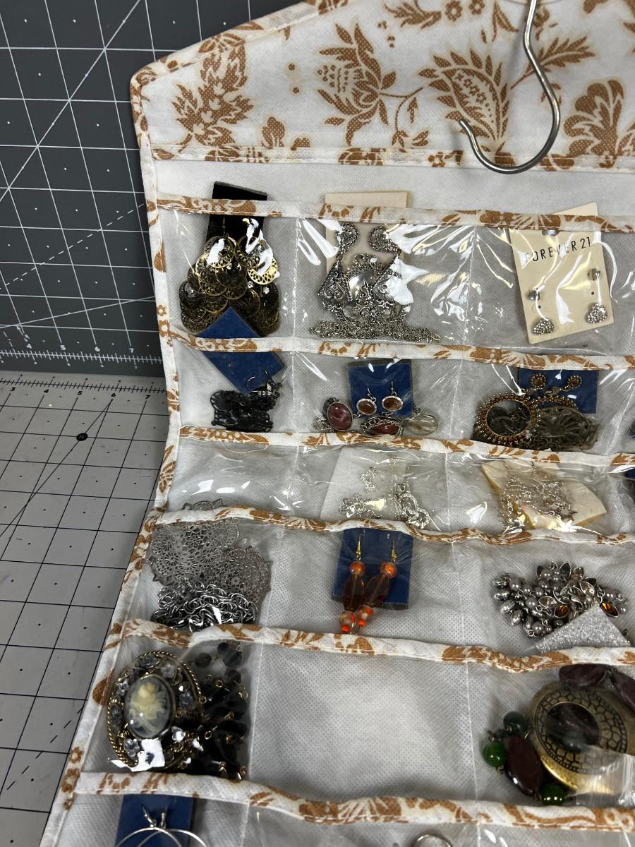2 Sided Hanging Bag of LARGE COLLECTION OF COSTUME Jewelry