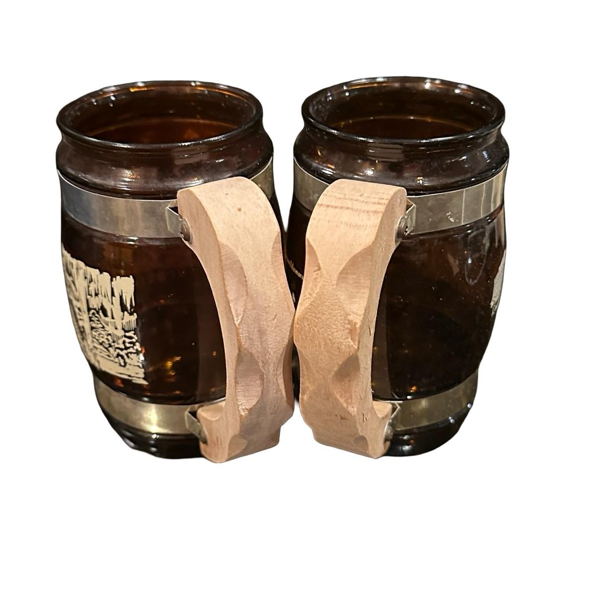 2 Siesta Ware Vintage Mugs with Washington DC & Luray Caverns VA, wood handles, no chips