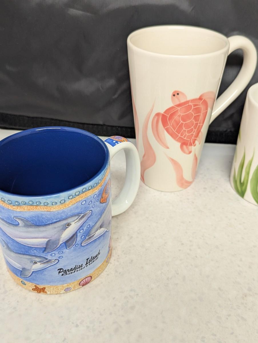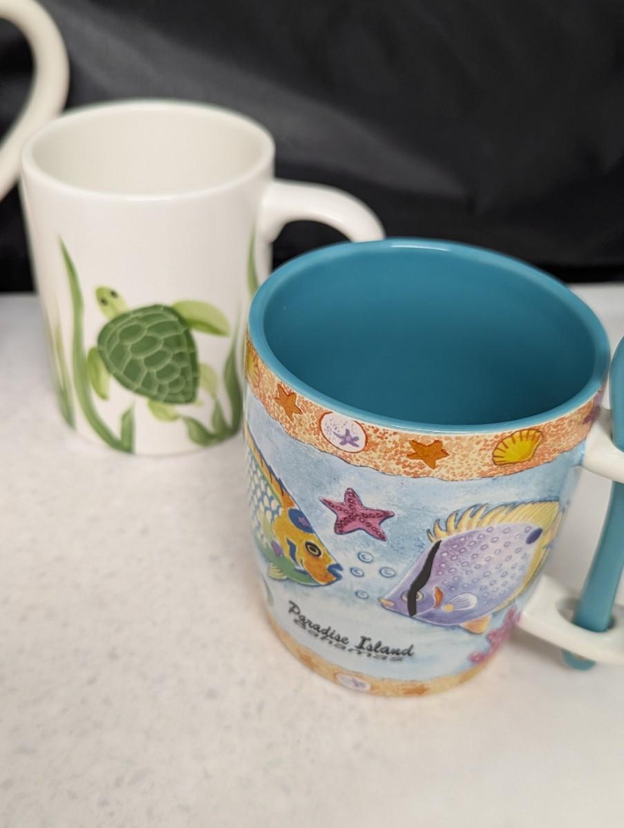 2 Signed Abaco Bahamas Sea Life Coffee Mugs #91
