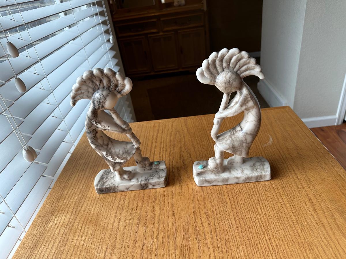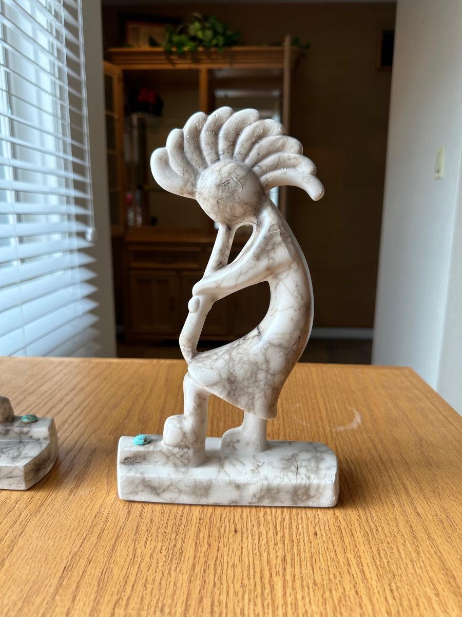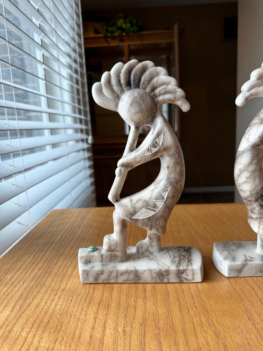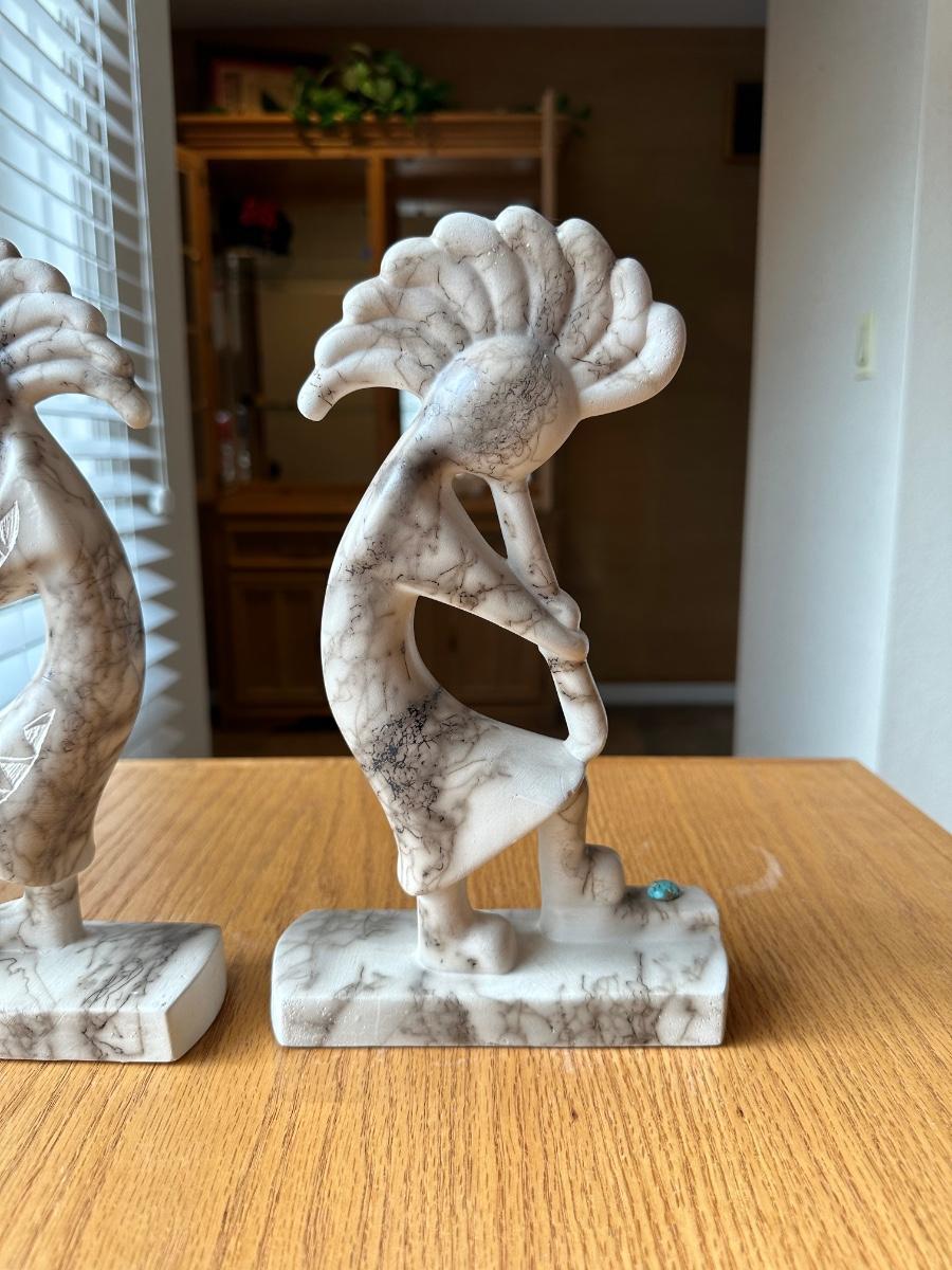 2 SIGNED HORSE HAIR KOKOPELLI STATUES