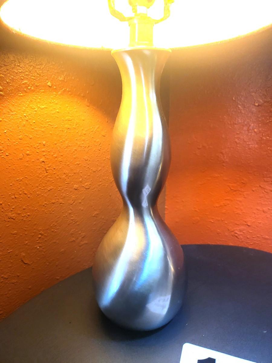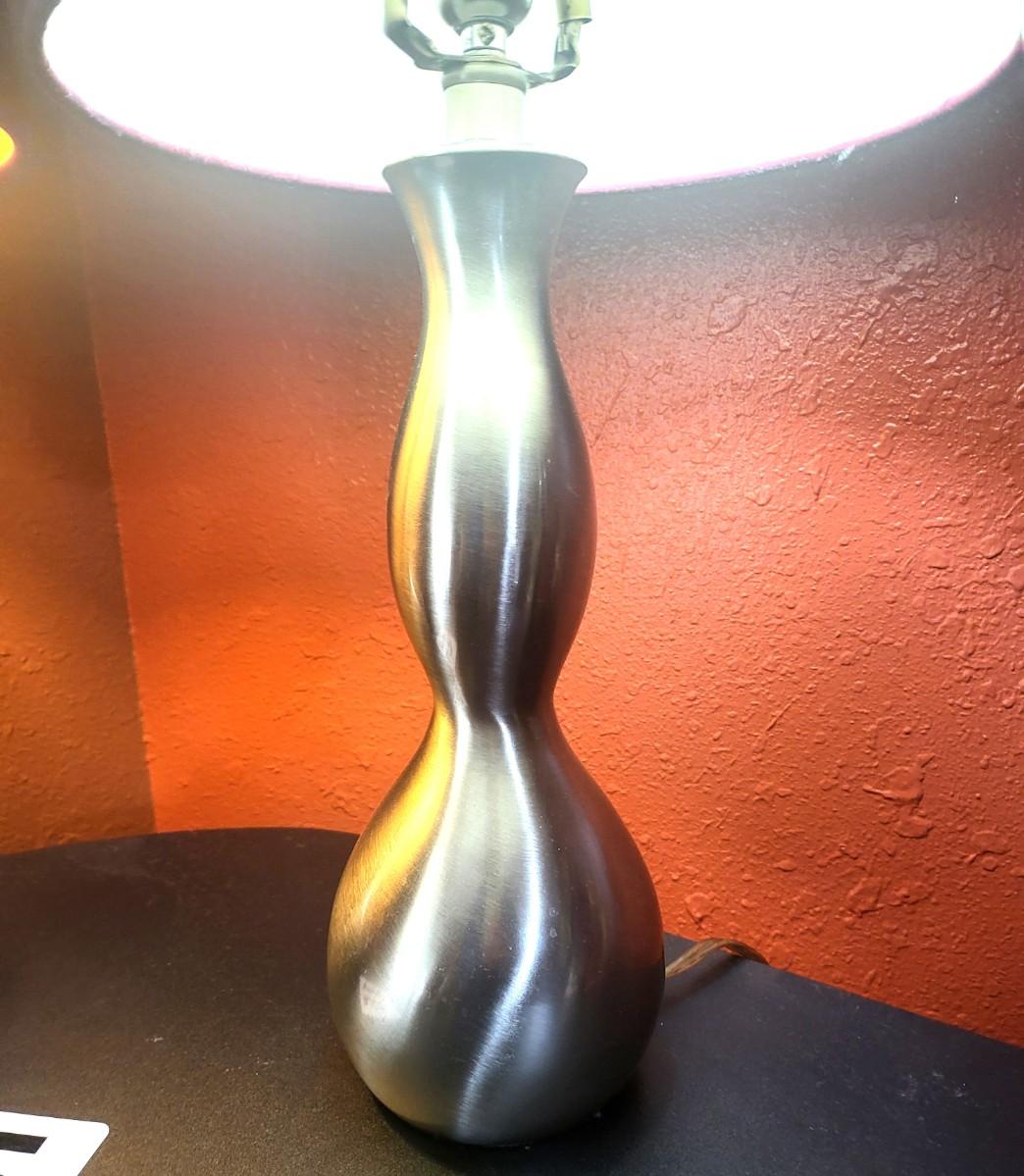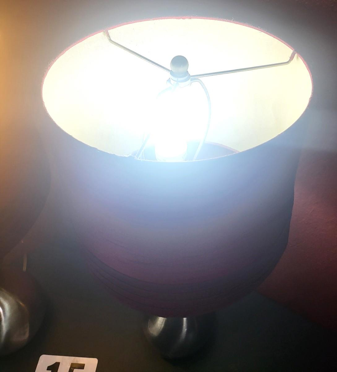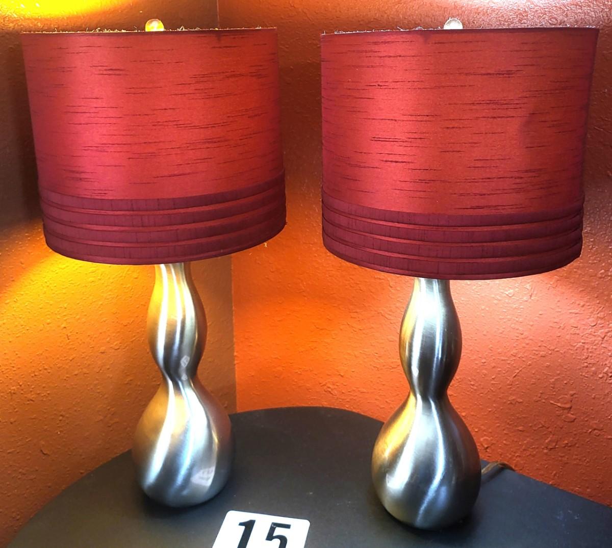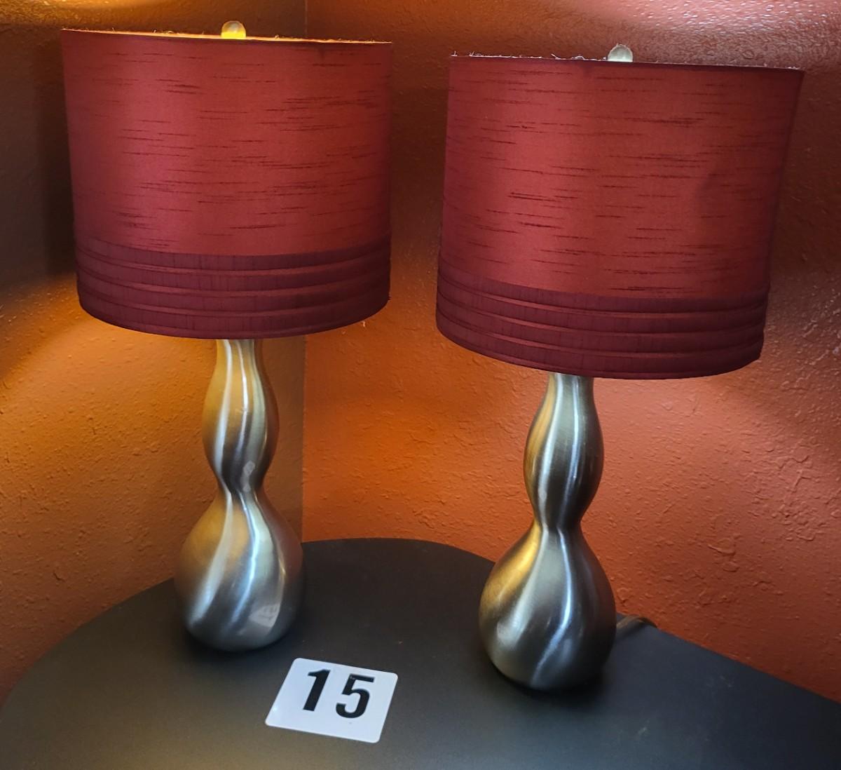 2 Silver Base Lamps with Maroon Shades - 23 Height to Finnell