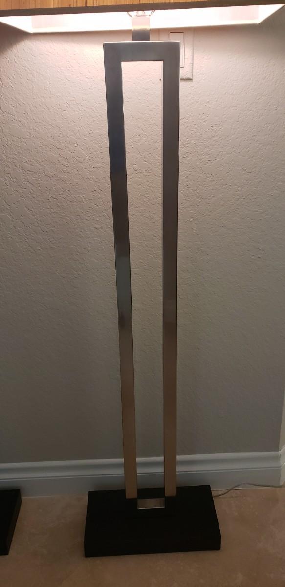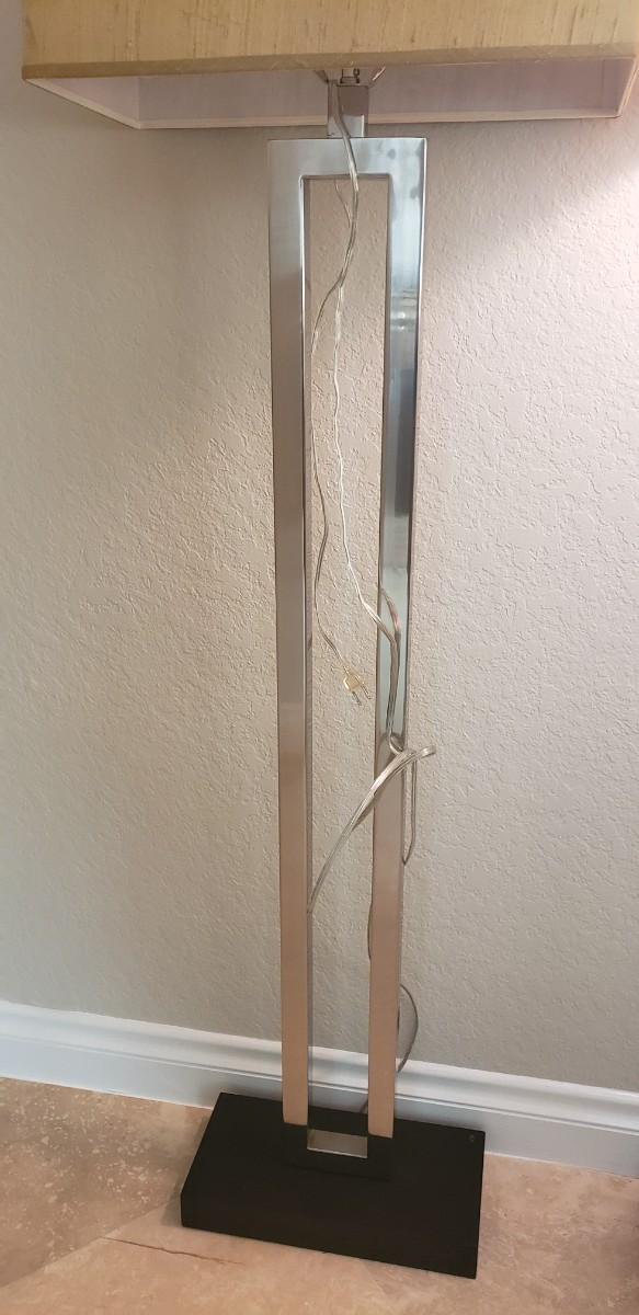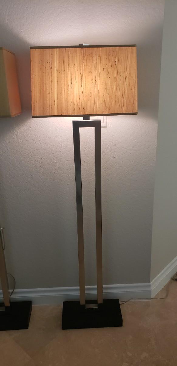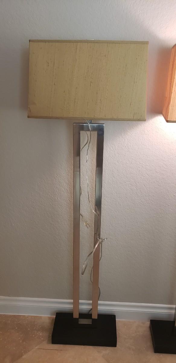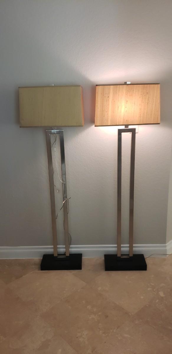 2 Silver Floor Lamps with Silk Shades